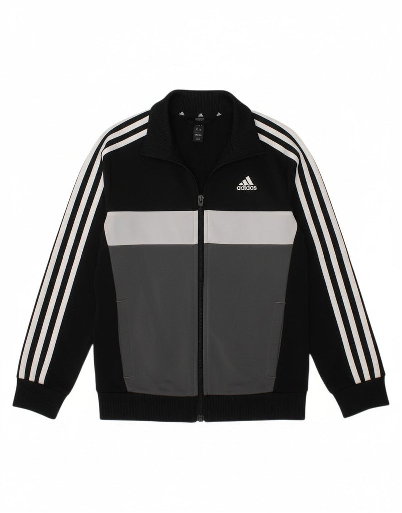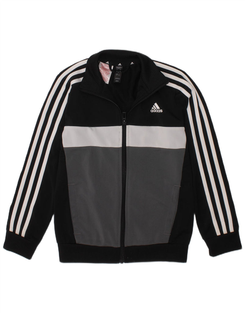 ADIDAS Boys Aeroready Tracksuit Top Jacket 7-8 Years Black Colourblock