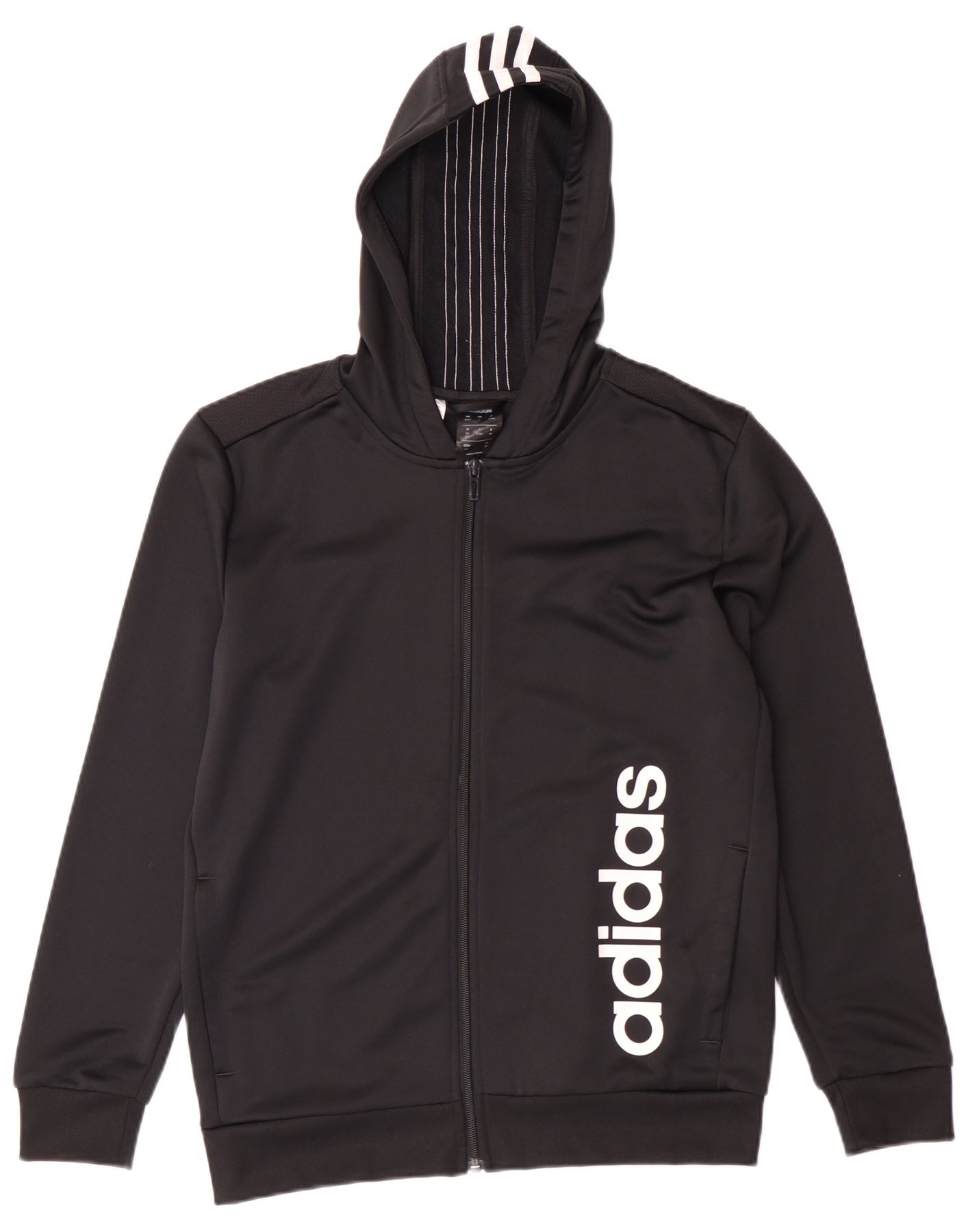 ADIDAS Boys Climalite Graphic Zip Hoodie Sweater 13-14 Years Black