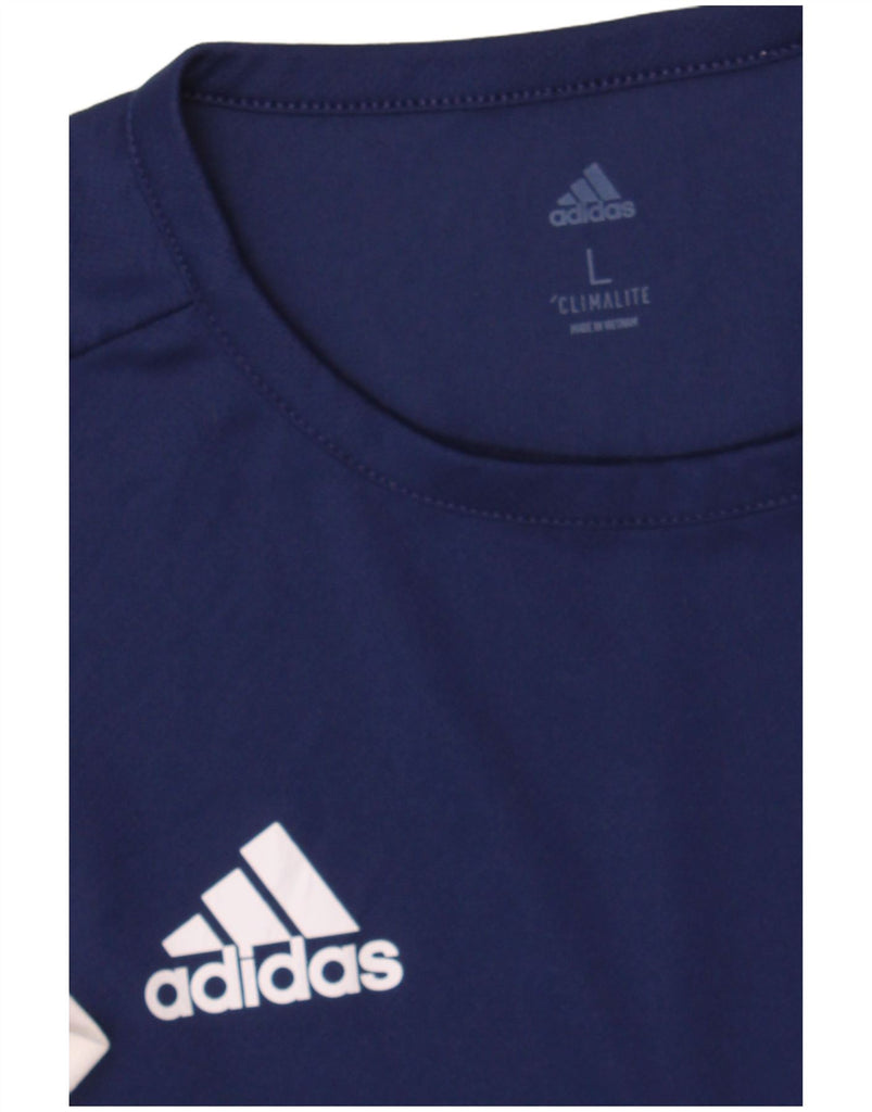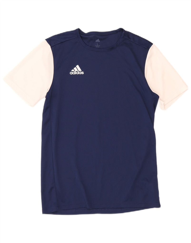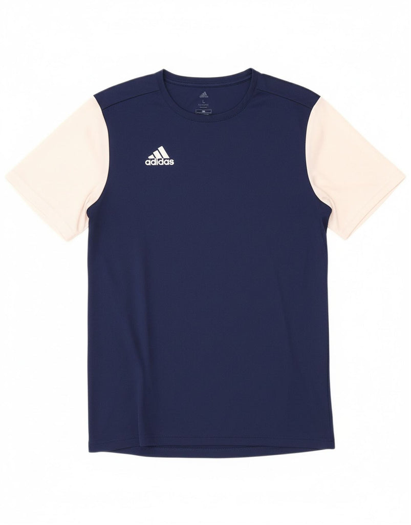 ADIDAS Boys Climalite T-Shirt Top 15-16 Years Large Navy Blue Colourblock