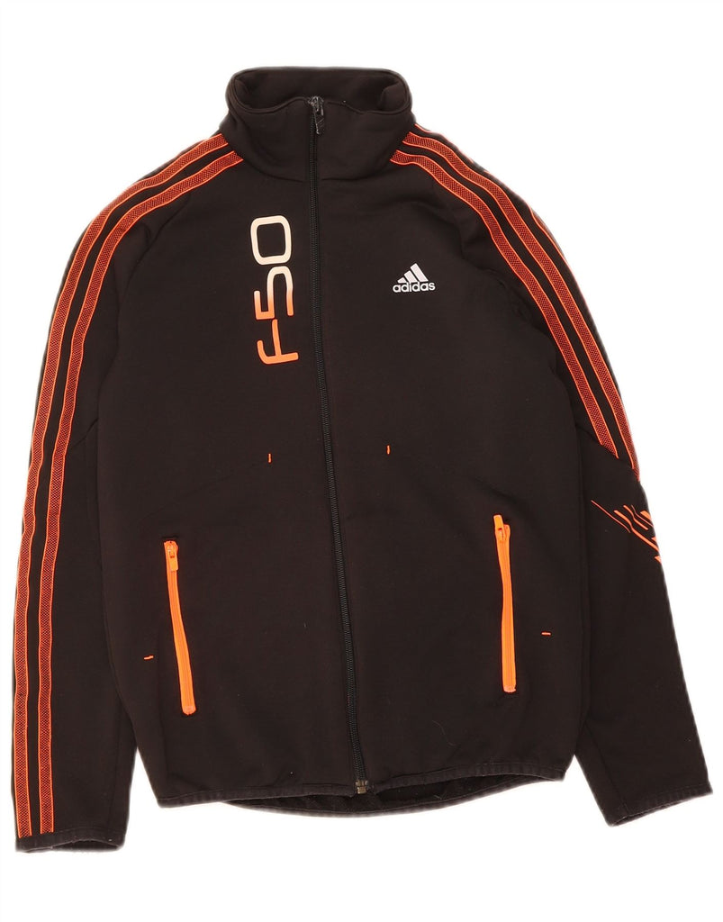 ADIDAS Boys F50 Graphic Tracksuit Top Jacket 11-12 Years Black Polyester