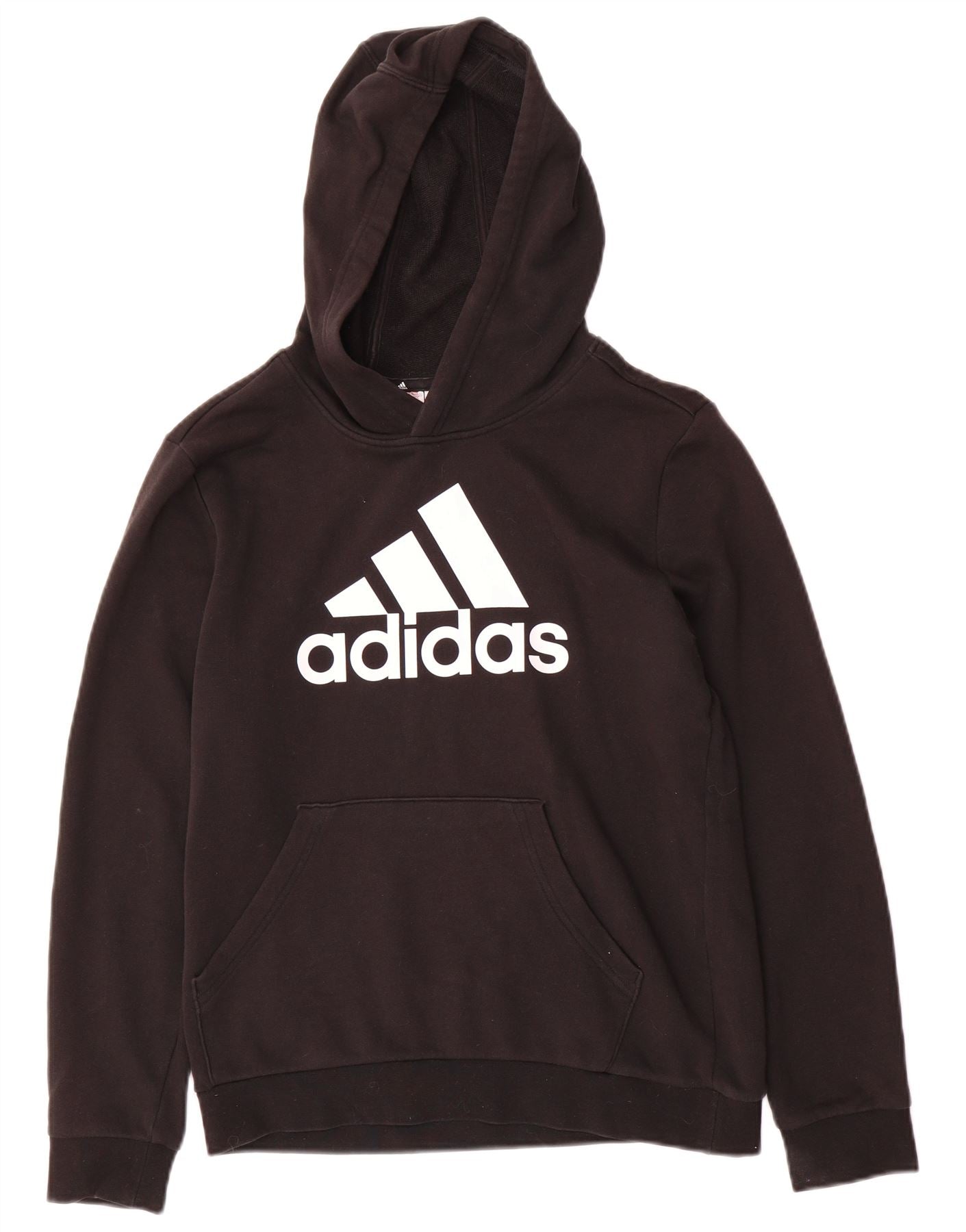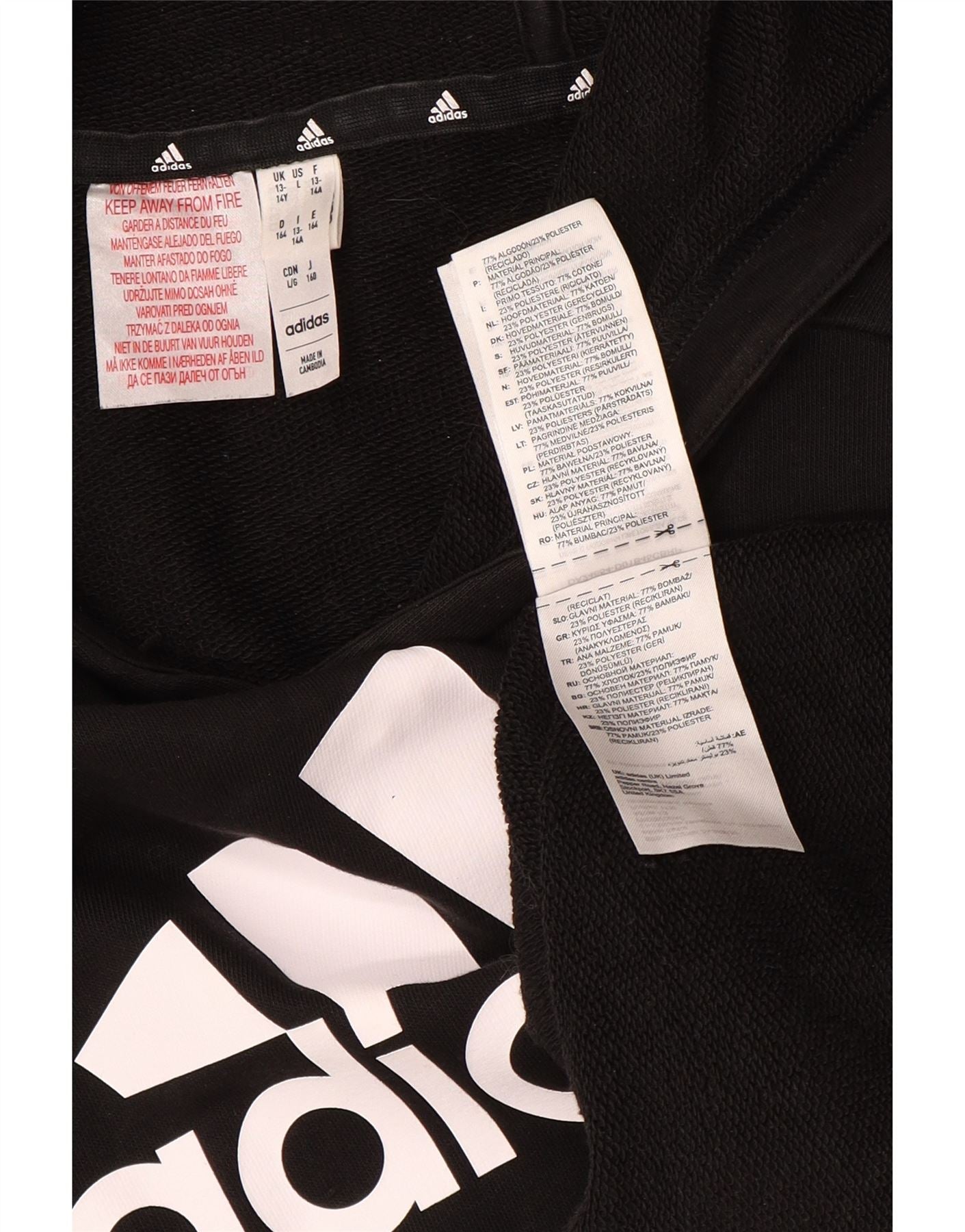 ADIDAS Boys Graphic Hoodie Jumper 13-14 Years Black Cotton