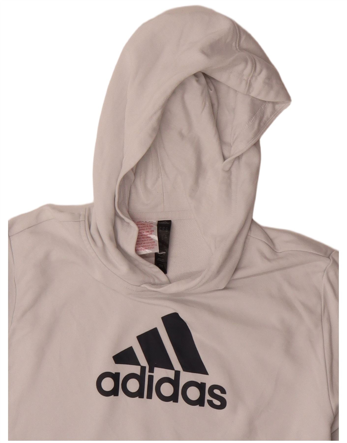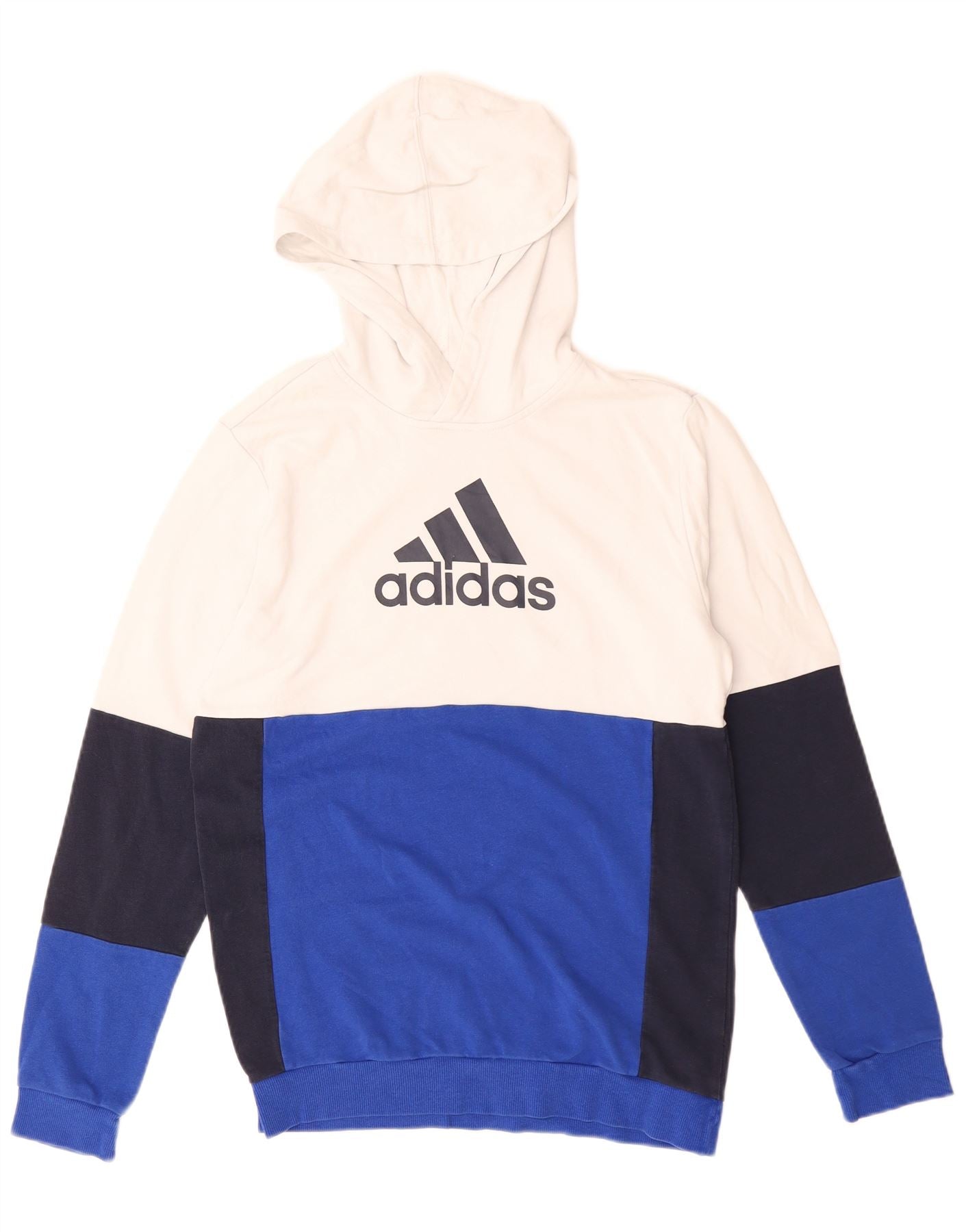 ADIDAS Boys Graphic Hoodie Jumper 15-16 Years White Colourblock Cotton