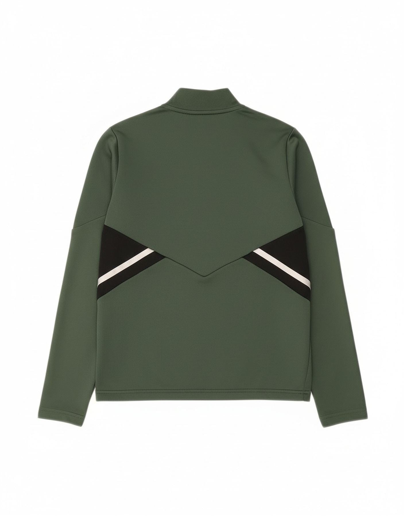 • AI Description: This Adidas boys zip neck jumper sweater is crafted from green recycled polyester jersey. It features a mock neck and a quarter zip closure for adjustable comfort. Long sleeves display the iconic three white stripes, with black panels on the sides. The regular fit offers ease of movement. An Adidas logo and Celtic FC crest add authentic team detailing.