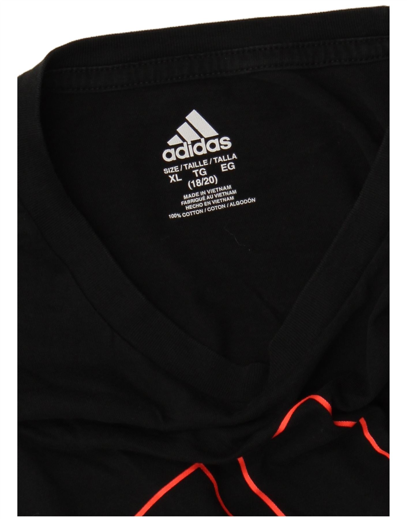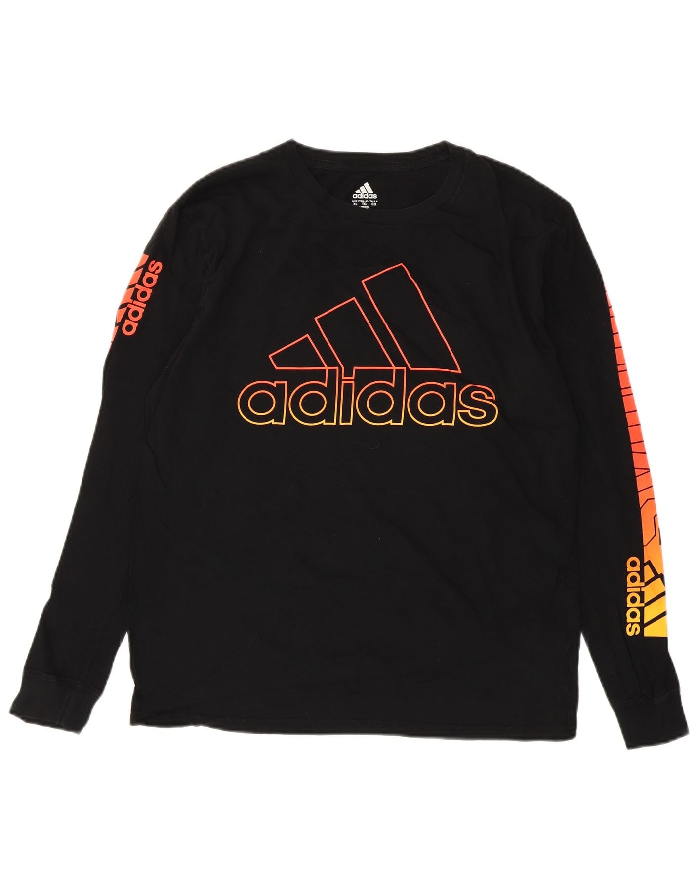 ADIDAS Boys Graphic Top Long Sleeve 15-16 Years XL Black Cotton