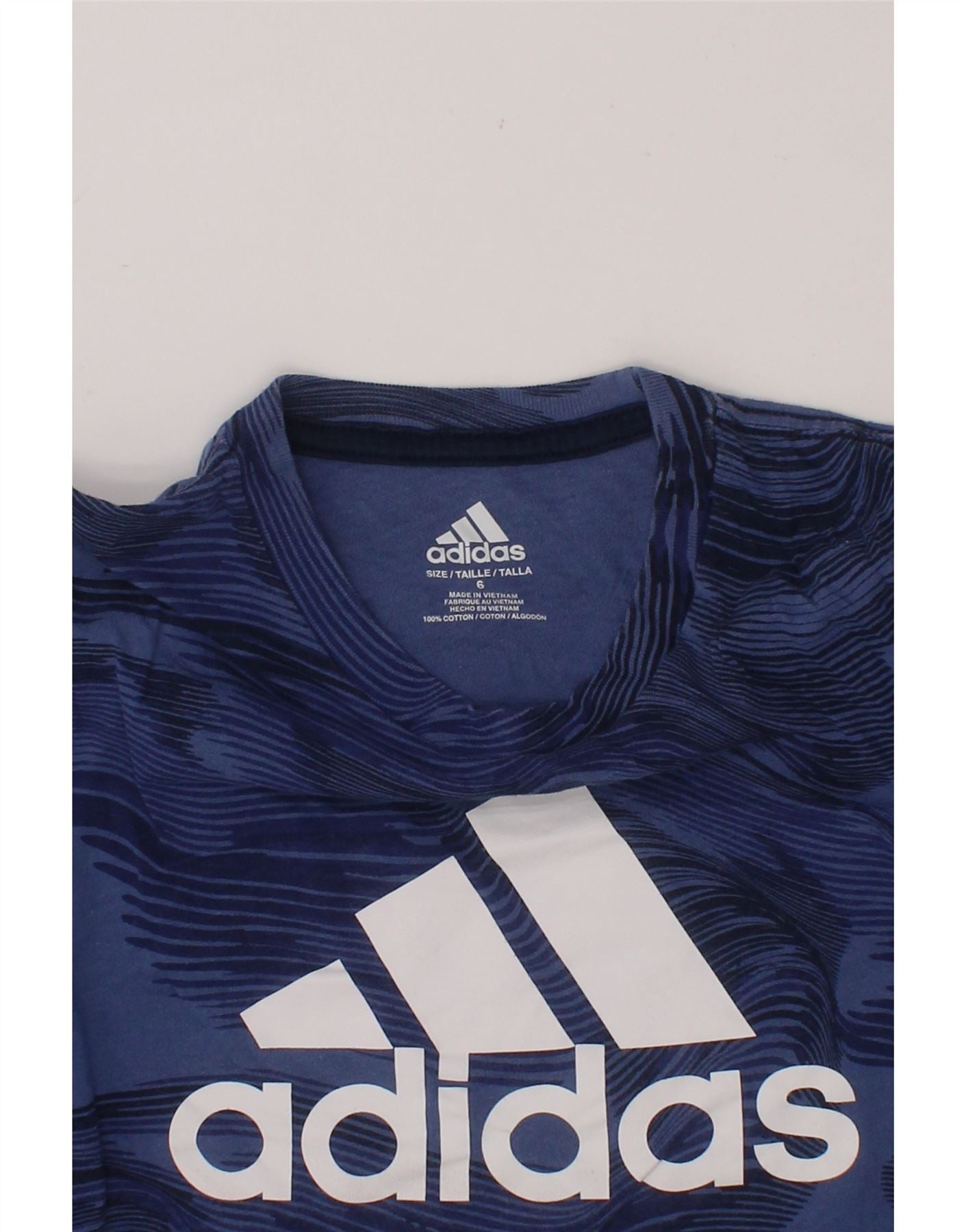 ADIDAS Boys Graphic Top Long Sleeve 5-6 Years Navy Blue Striped Cotton