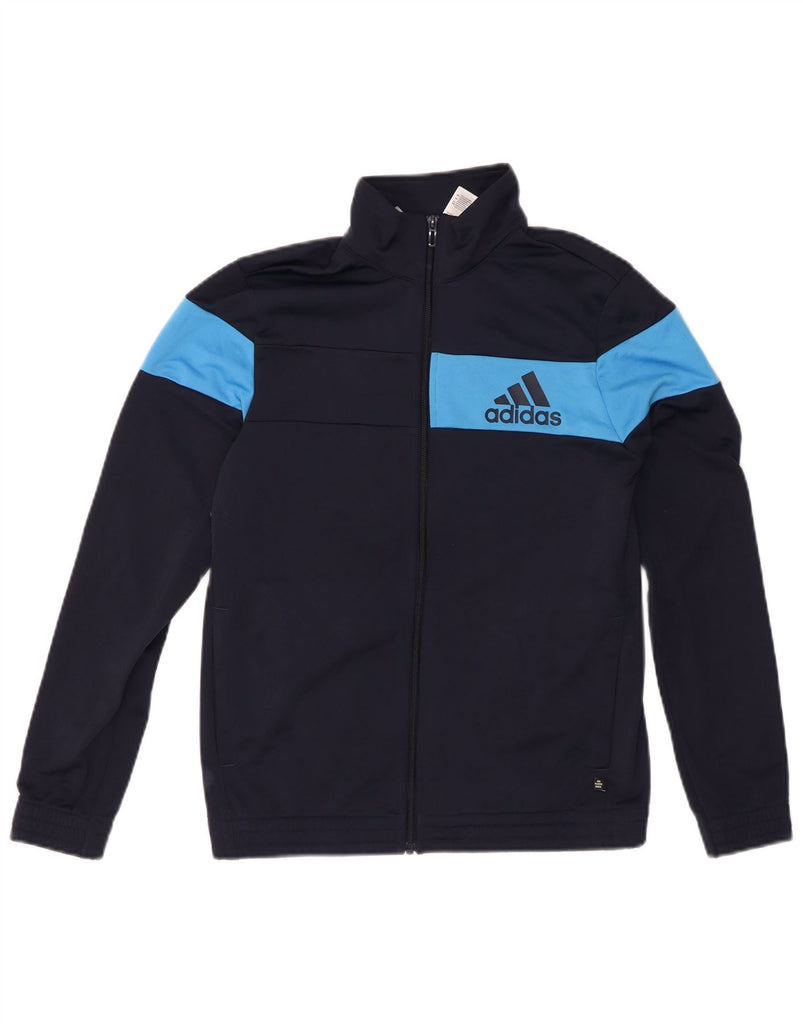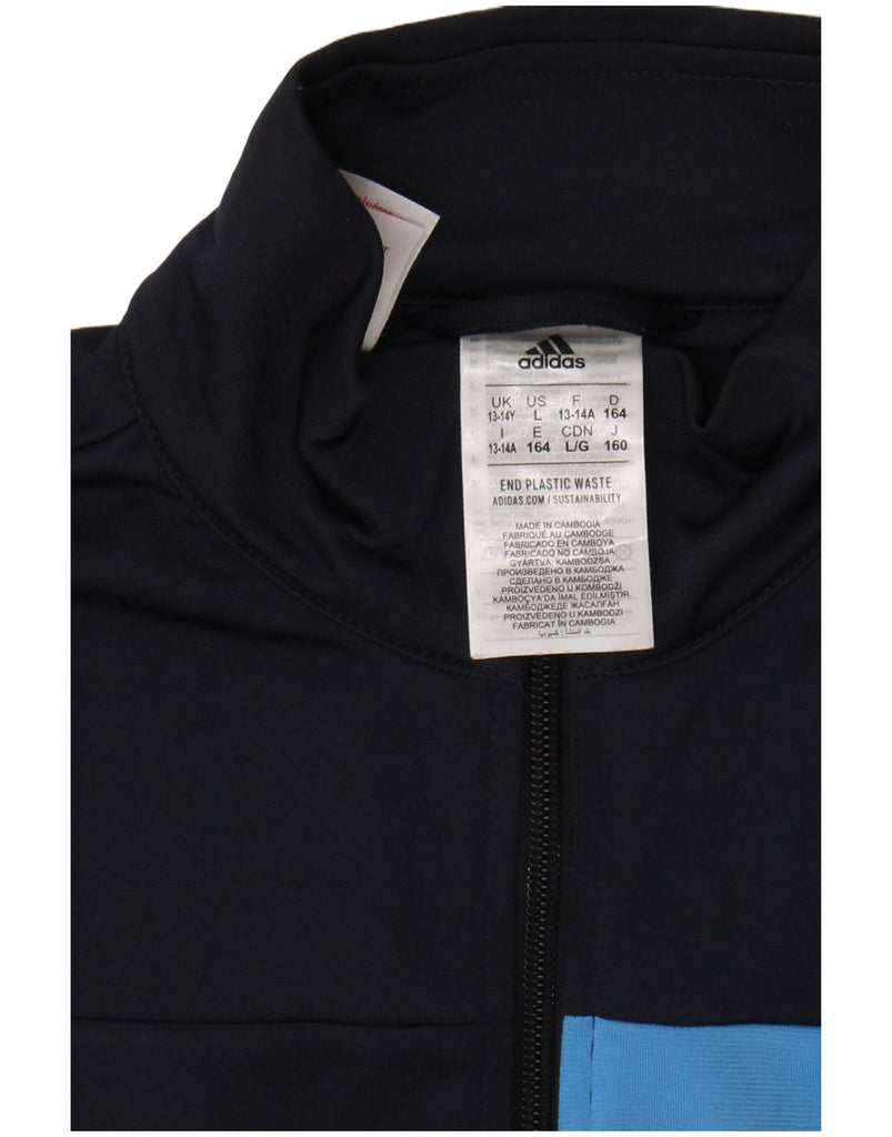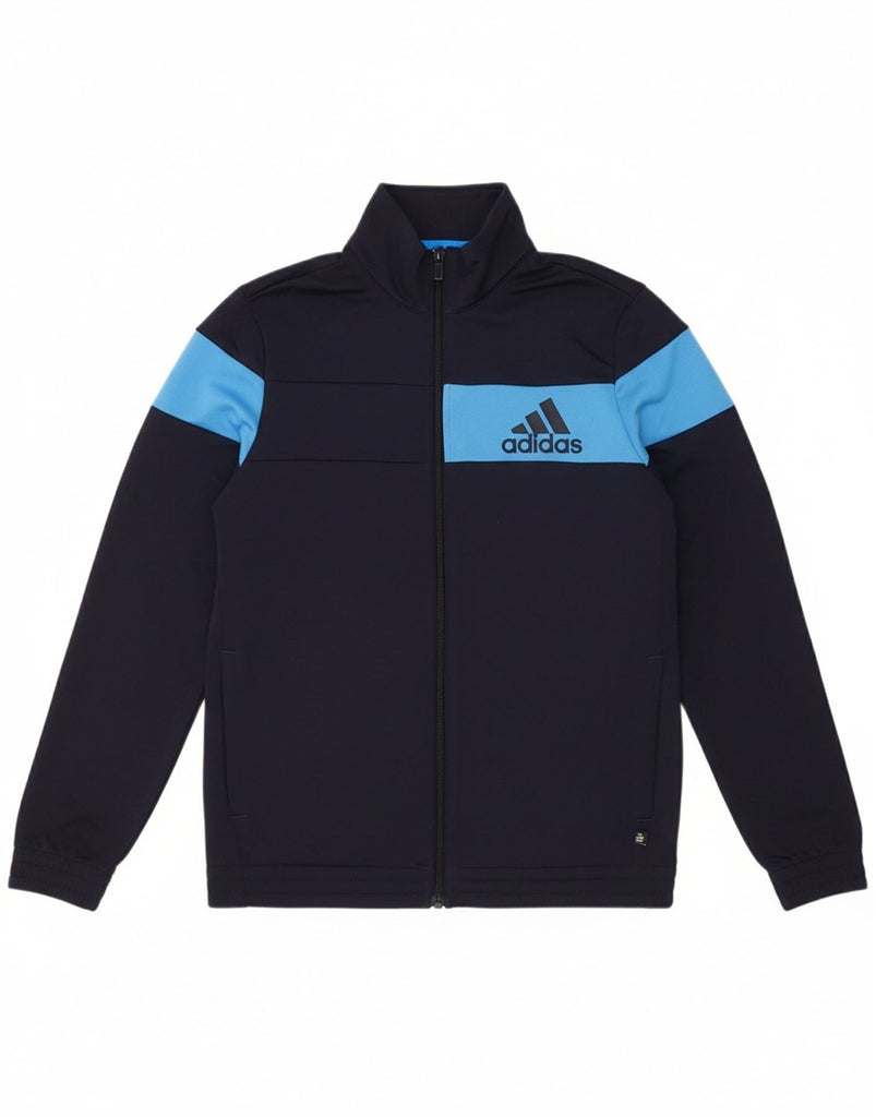 ADIDAS Boys Graphic Tracksuit Top Jacket 13-14 Years Navy Blue Colourblock