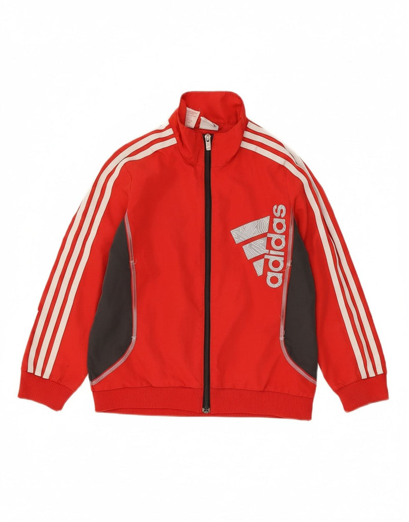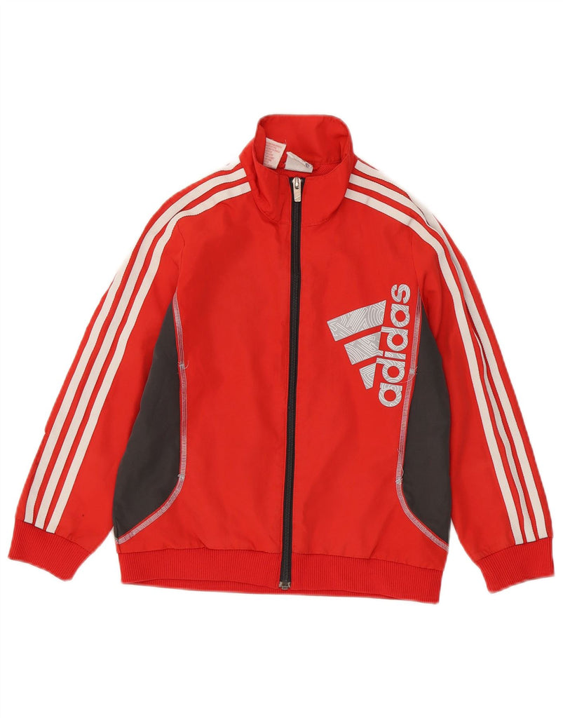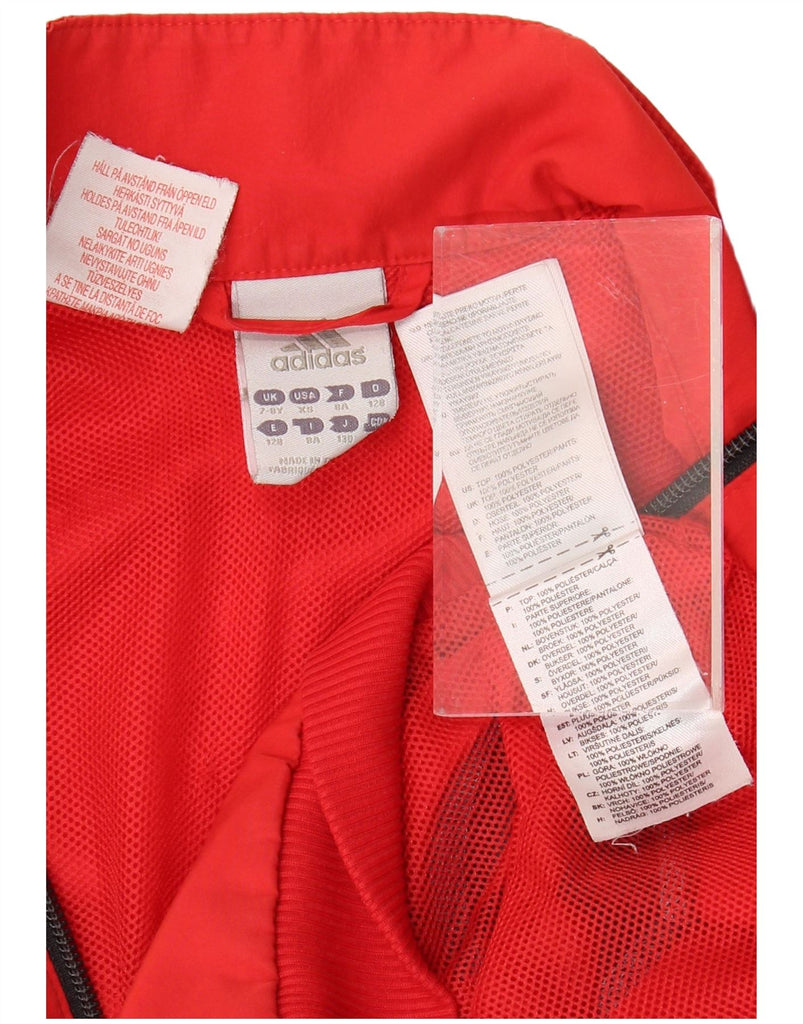 ADIDAS Boys Graphic Tracksuit Top Jacket 7-8 Years Red Colourblock
