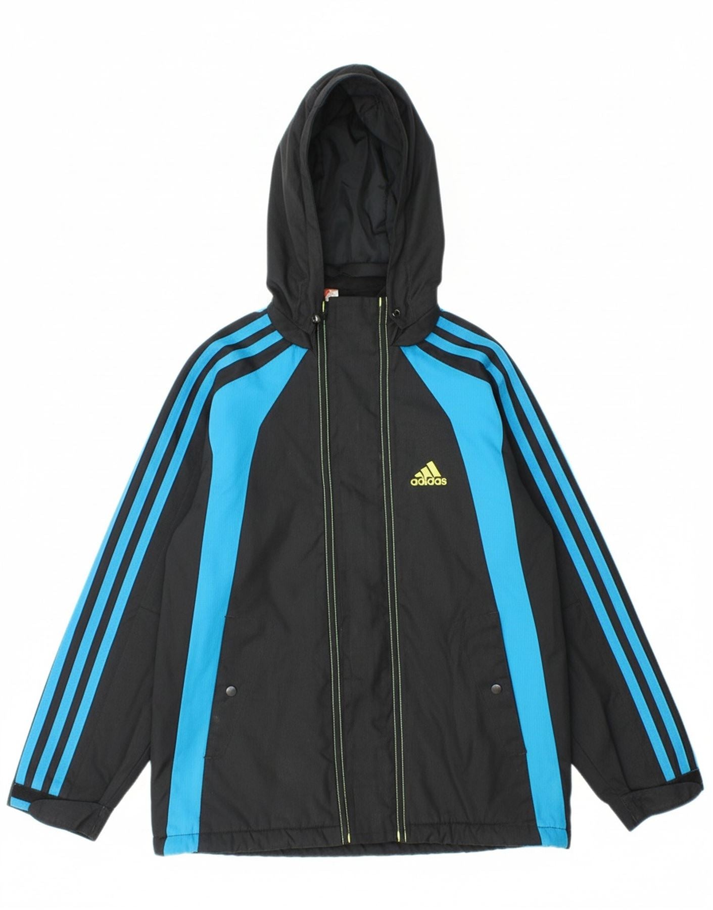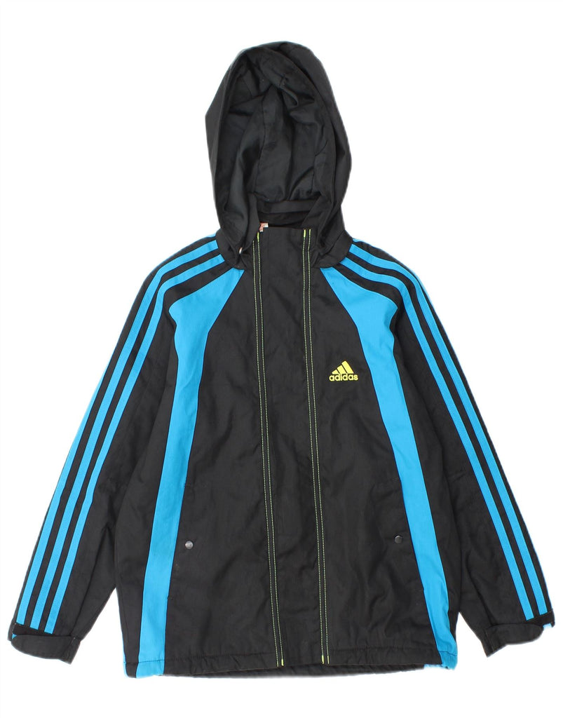 ADIDAS Boys Hooded Windbreaker Jacket 7-8 Years Navy Blue Colourblock