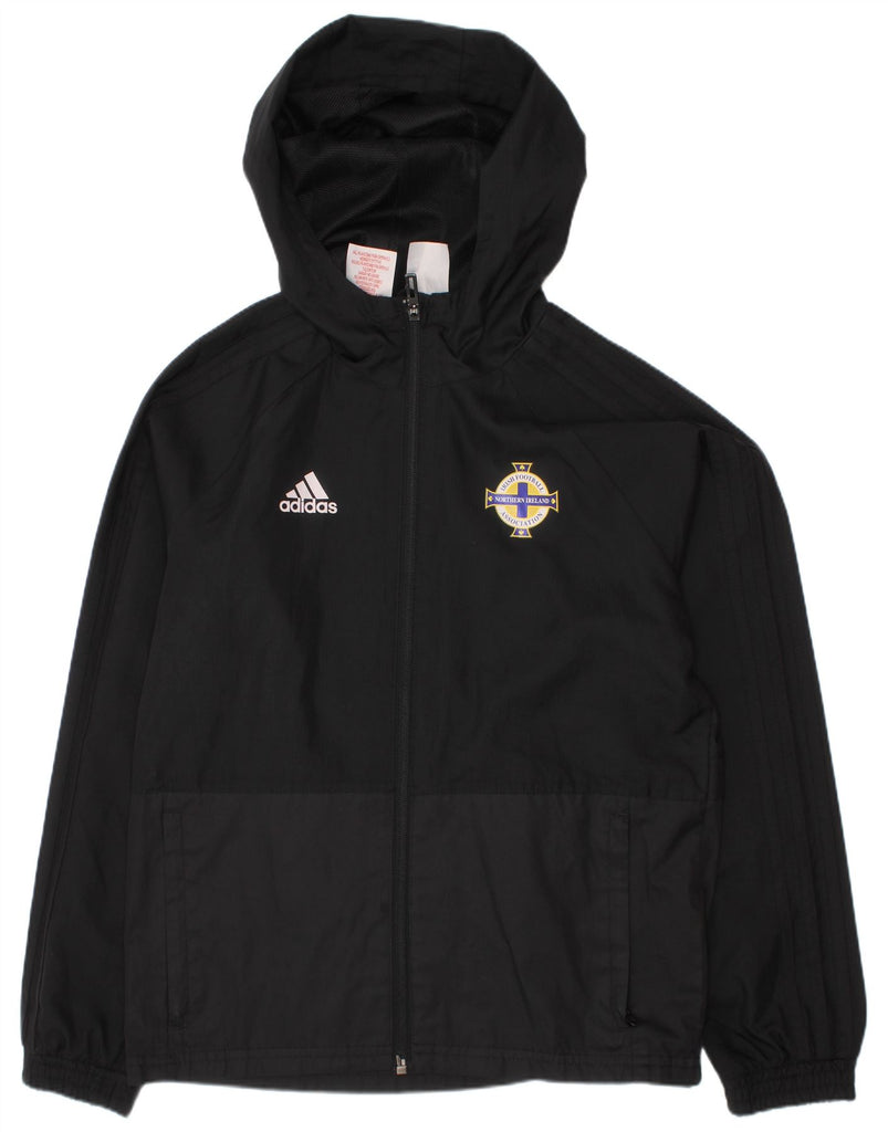 ADIDAS Boys Irish Football Hooded Tracksuit Top Jacket 9-10 Years Black