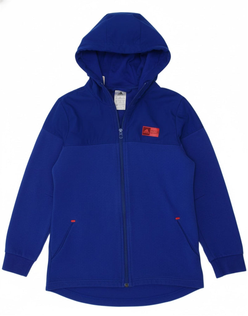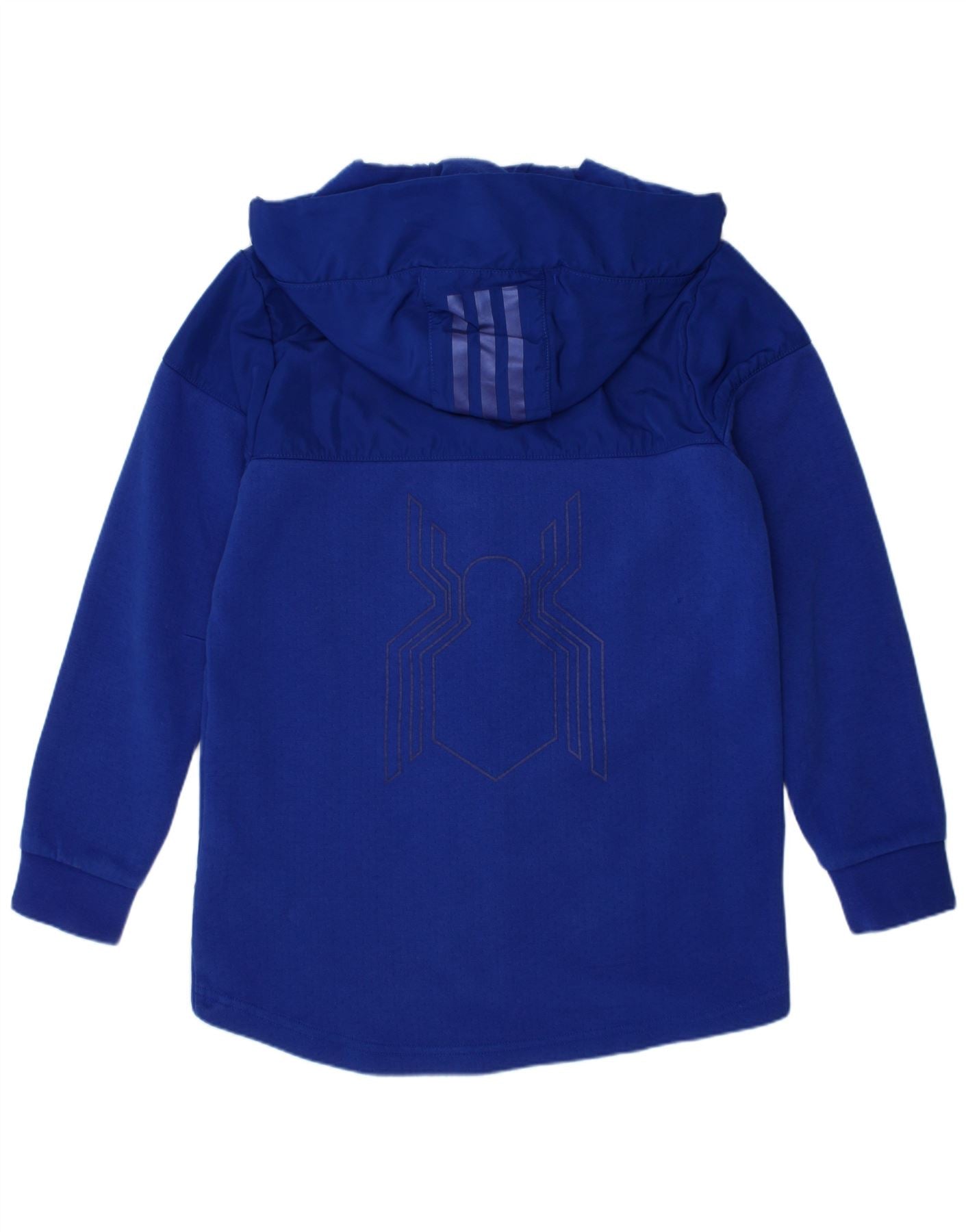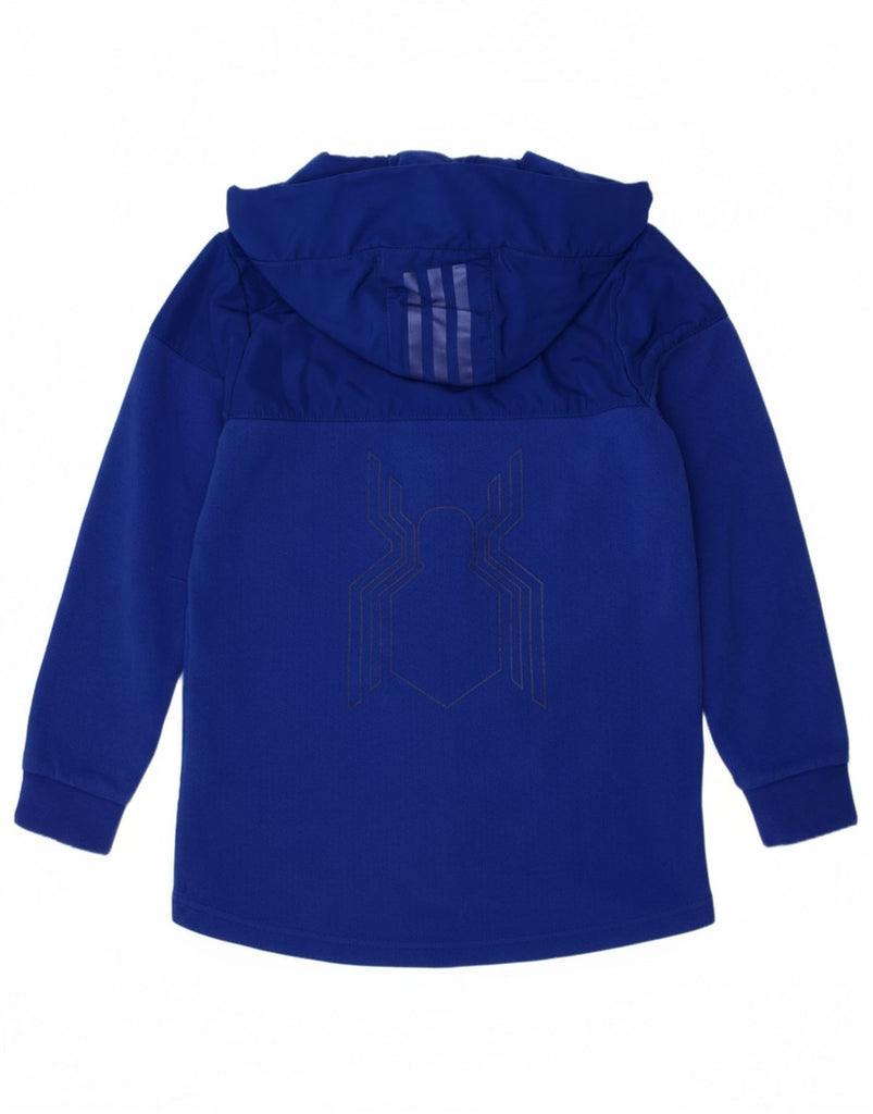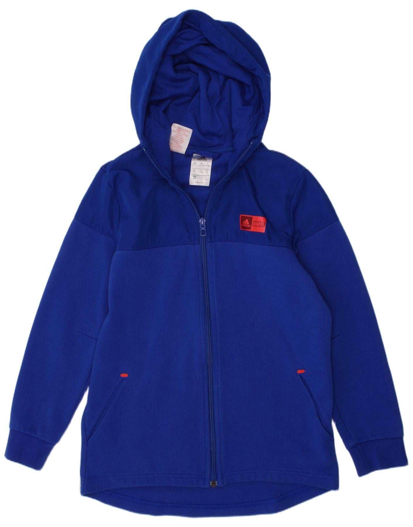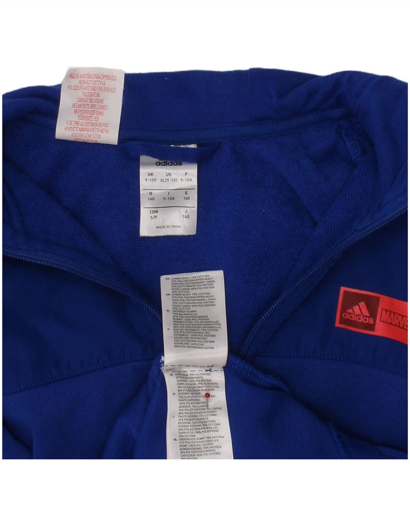 ADIDAS Boys Marvel Graphic Zip Hoodie Sweater 9-10 Years Blue Cotton