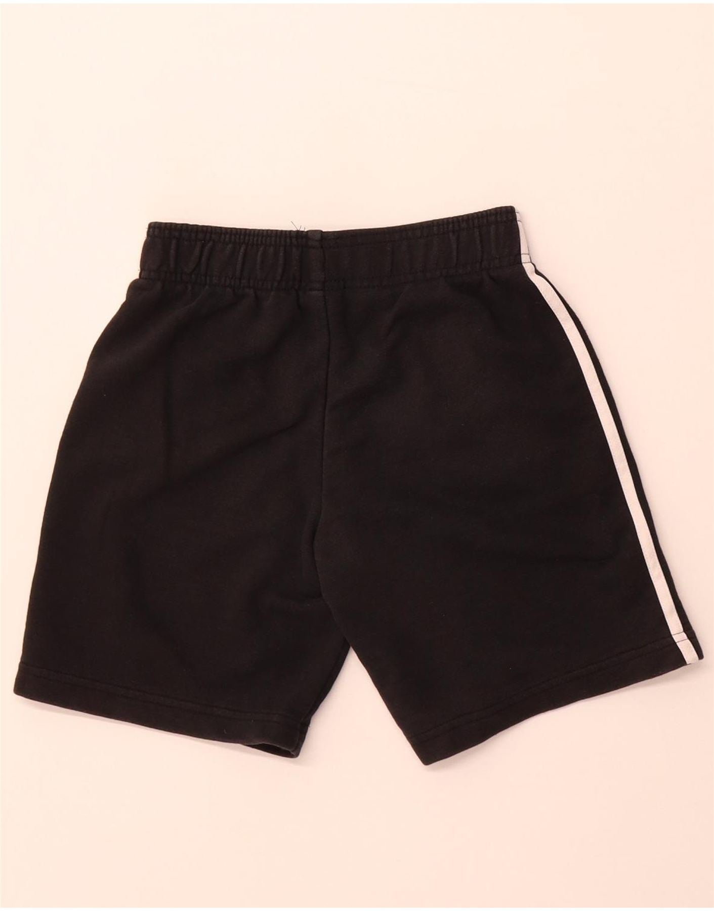 - AI Description: This Adidas boys' casual shorts are crafted from soft black jersey fabric. They feature a comfortable pull-on elastic waist and a regular fit. White stripes run down the sides, adding a classic sports aesthetic. An Adidas logo is subtly placed on one leg. Practical pockets offer convenience. Designed for comfort and ease of movement, these shorts are perfect for everyday wear.