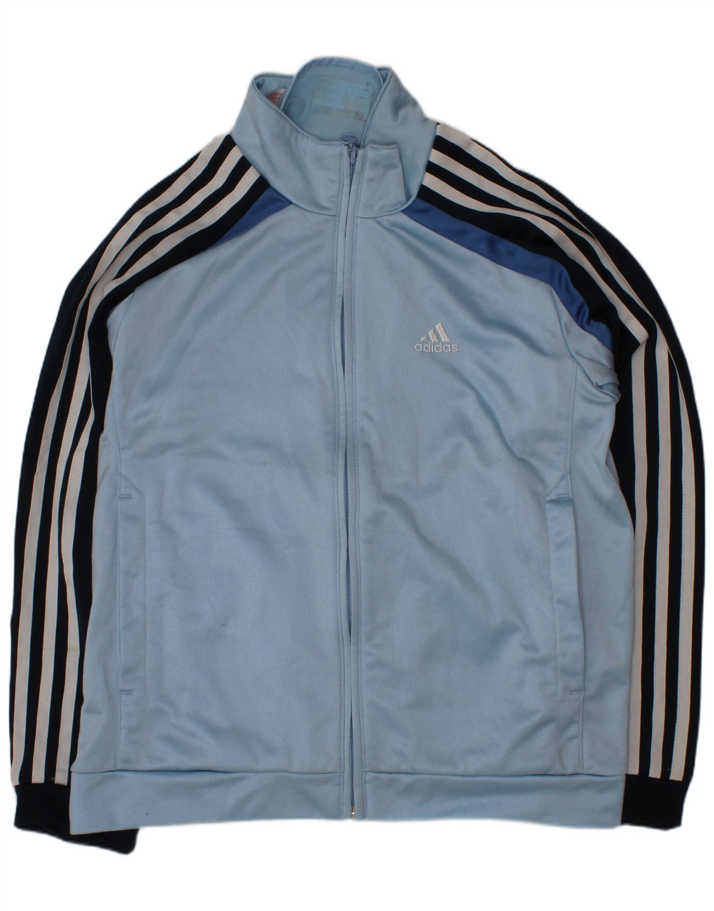 ADIDAS Boys Tracksuit Top Jacket 11-12 Years Blue Colourblock Polyester