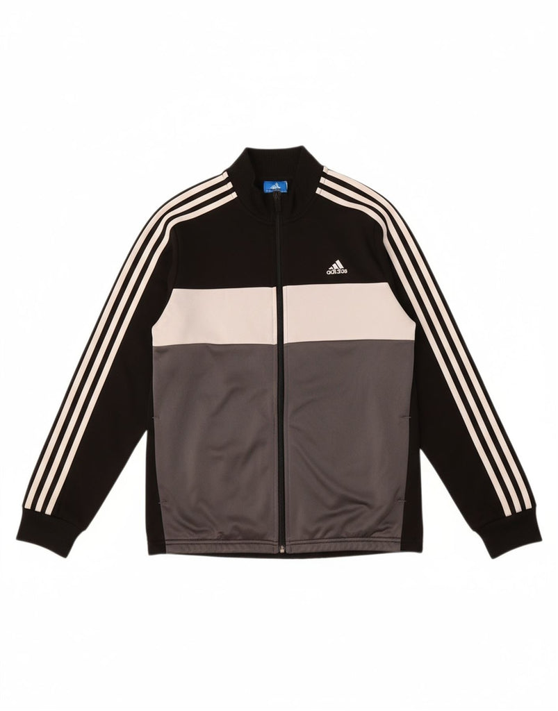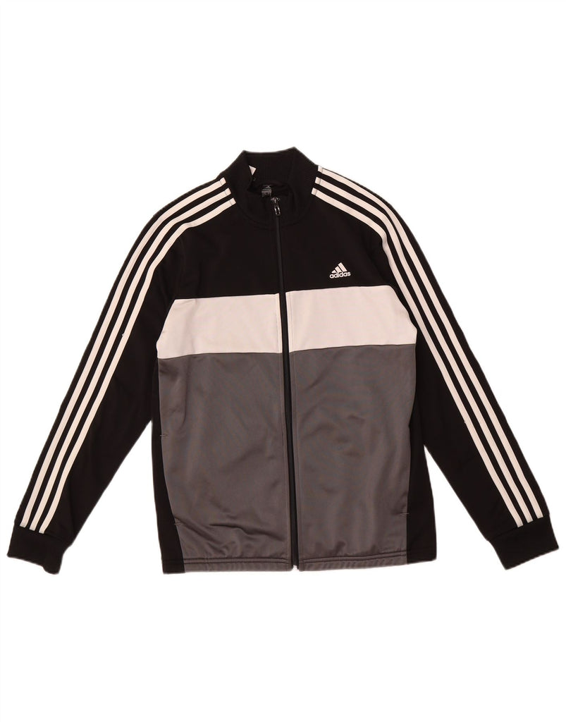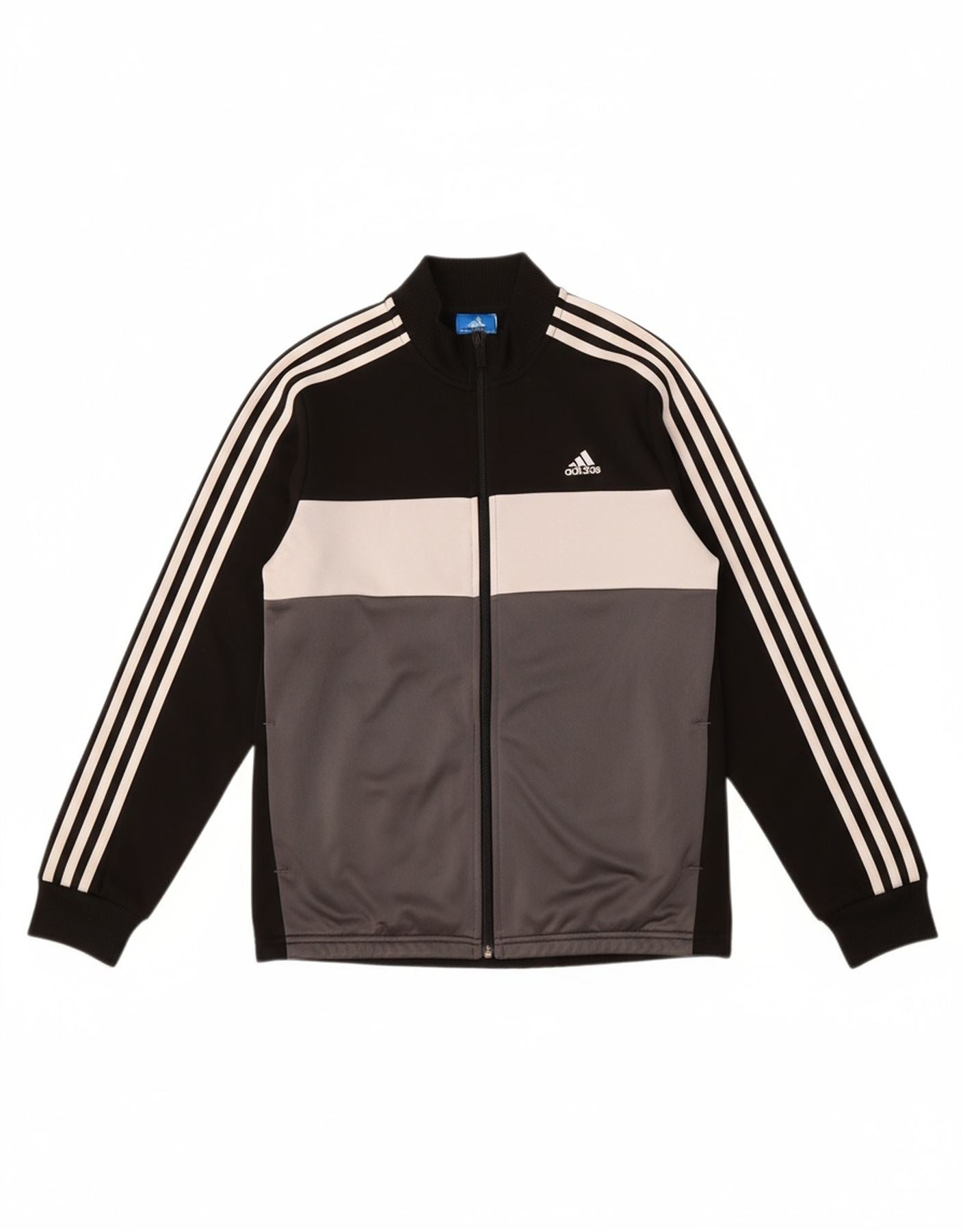 ADIDAS Boys Tracksuit Top Jacket 13-14 Years Black Colourblock Sports