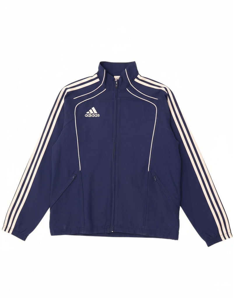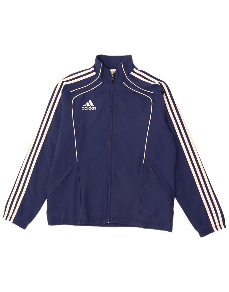 ADIDAS Boys Tracksuit Top Jacket 13-14 Years Blue Polyester Sports