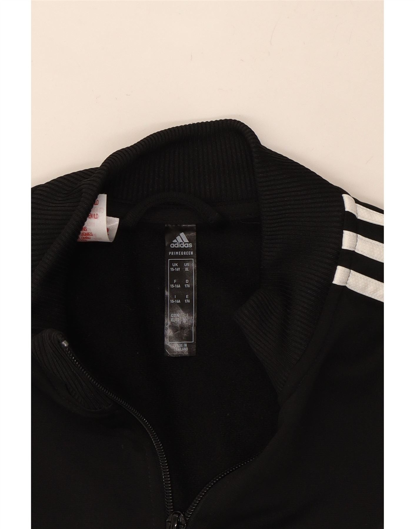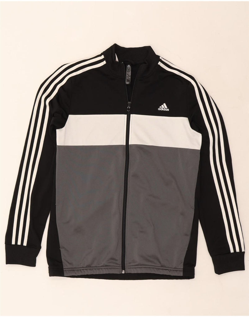 ADIDAS Boys Tracksuit Top Jacket 15-16 Years Black Colourblock Polyester