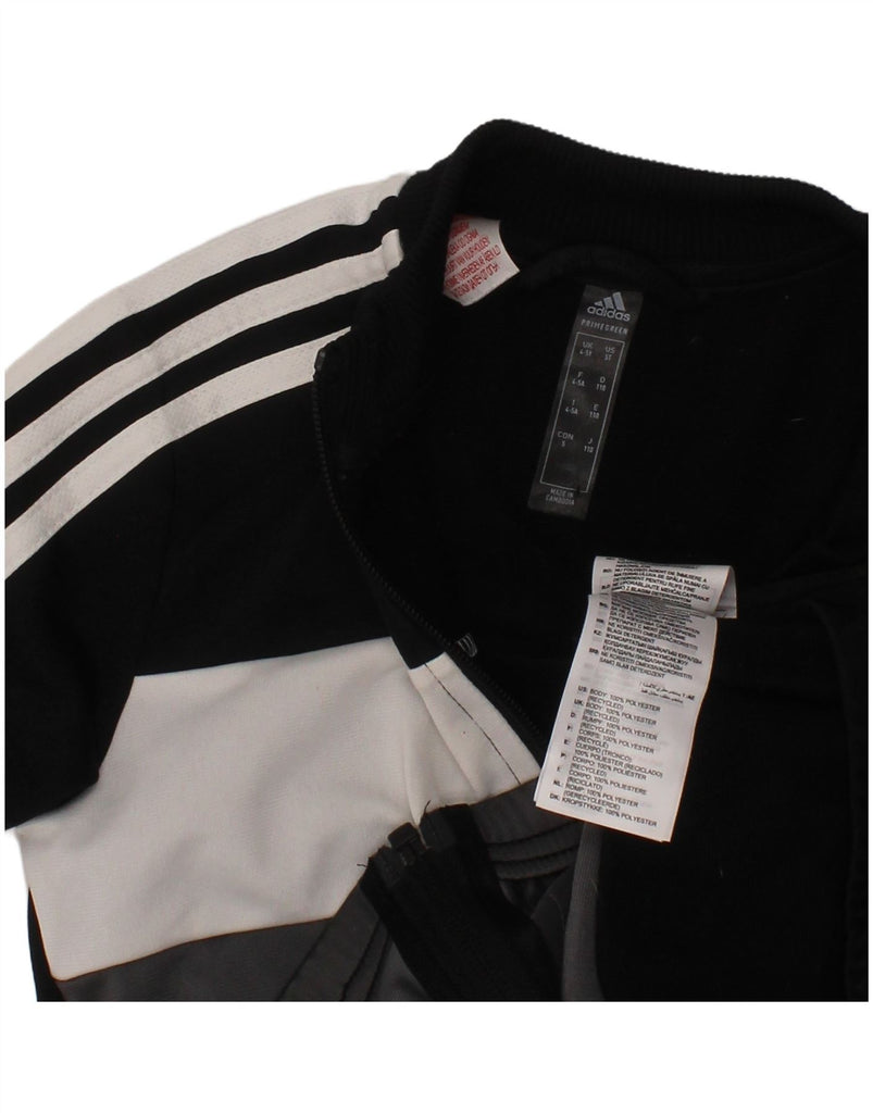 ADIDAS Boys Tracksuit Top Jacket 4-5 Years Black Colourblock Polyester