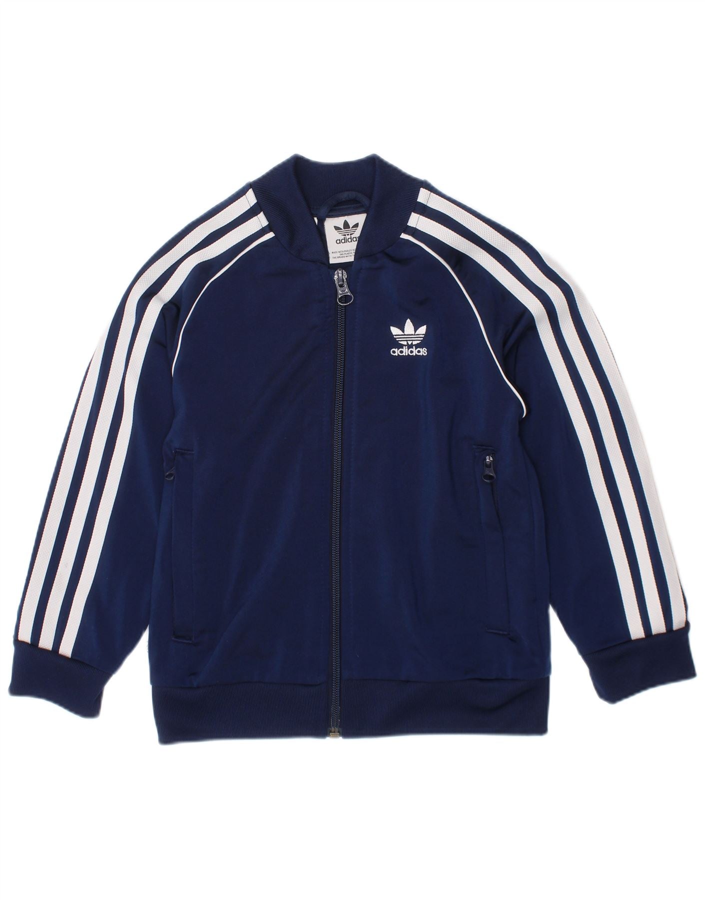 Adidas Boys Tracksuit Top Jacket 4-5 Years Navy Blue Polyester