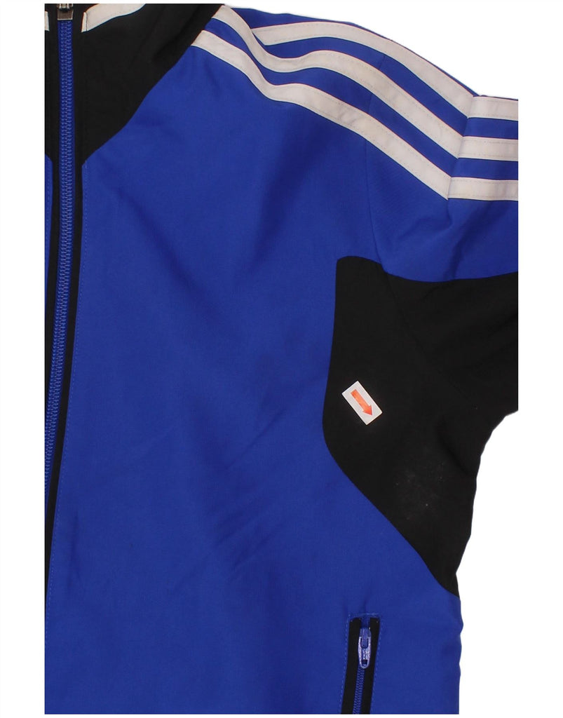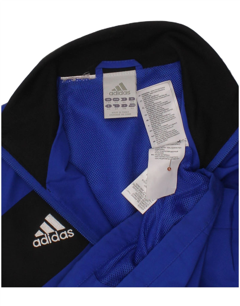 ADIDAS Boys Tracksuit Top Jacket 7-8 Years Blue Colourblock Polyester