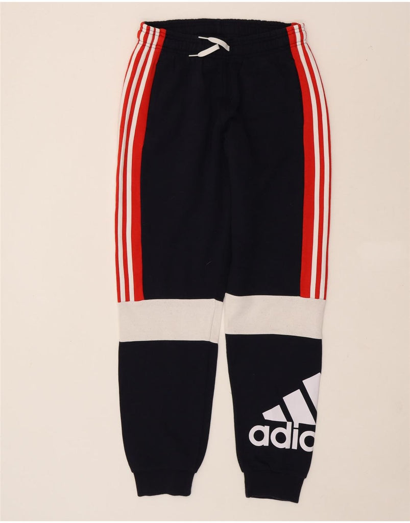 ADIDAS Boys Tracksuit Trousers Joggers 13-14 Years Navy Blue Colourblock