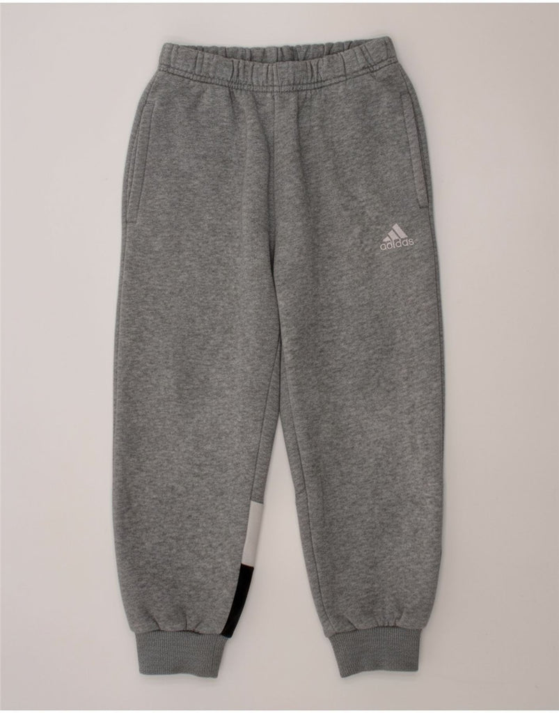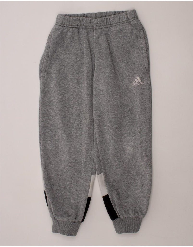 ADIDAS Boys Tracksuit Trousers Joggers 5-6 Years Grey Colourblock Cotton