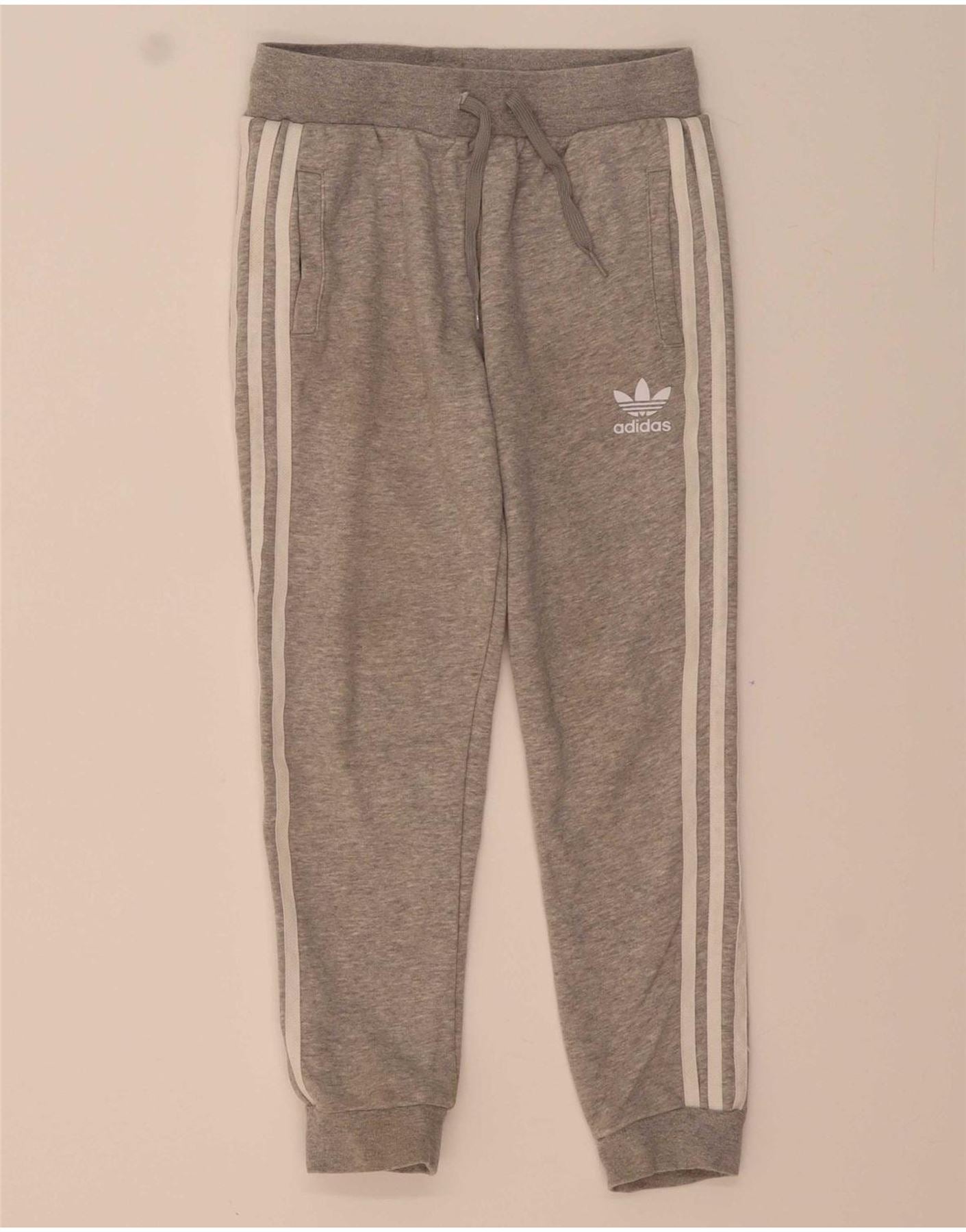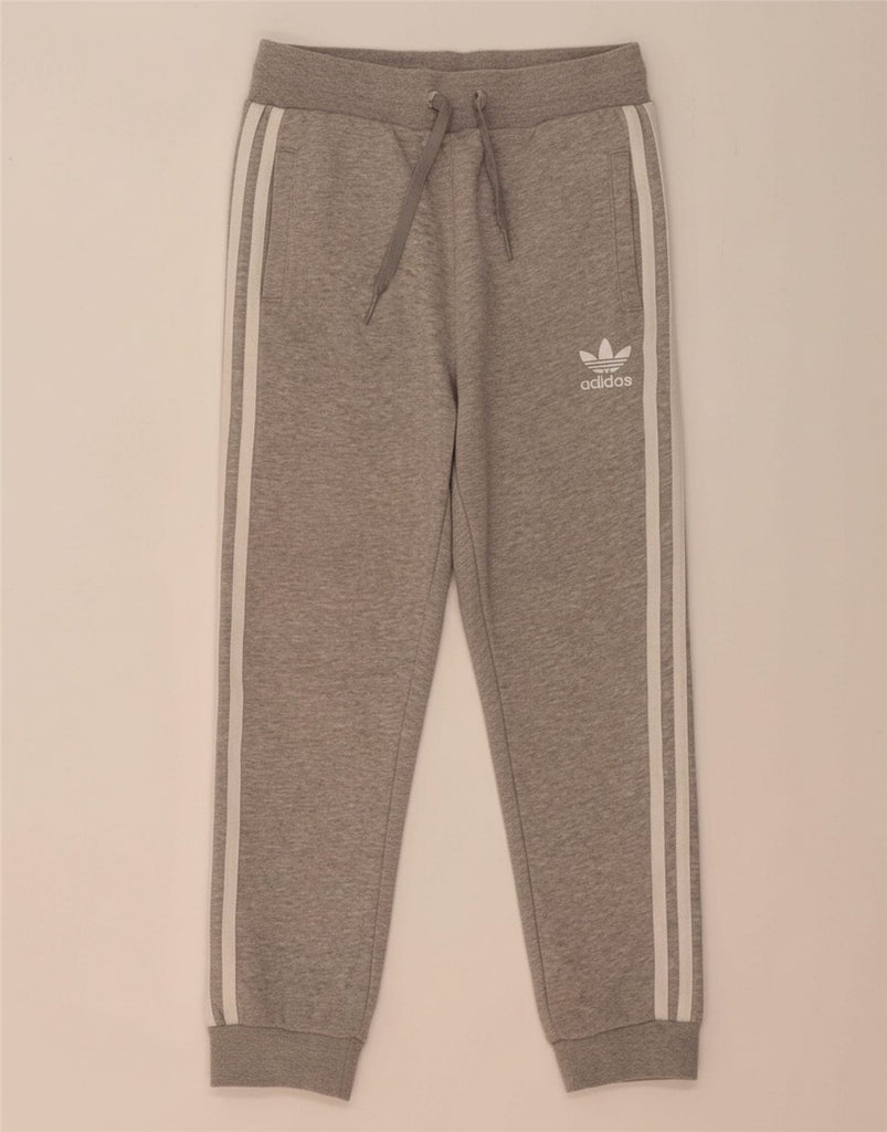 ADIDAS Boys Tracksuit Trousers Joggers 9-10 Years Grey Flecked Polyester