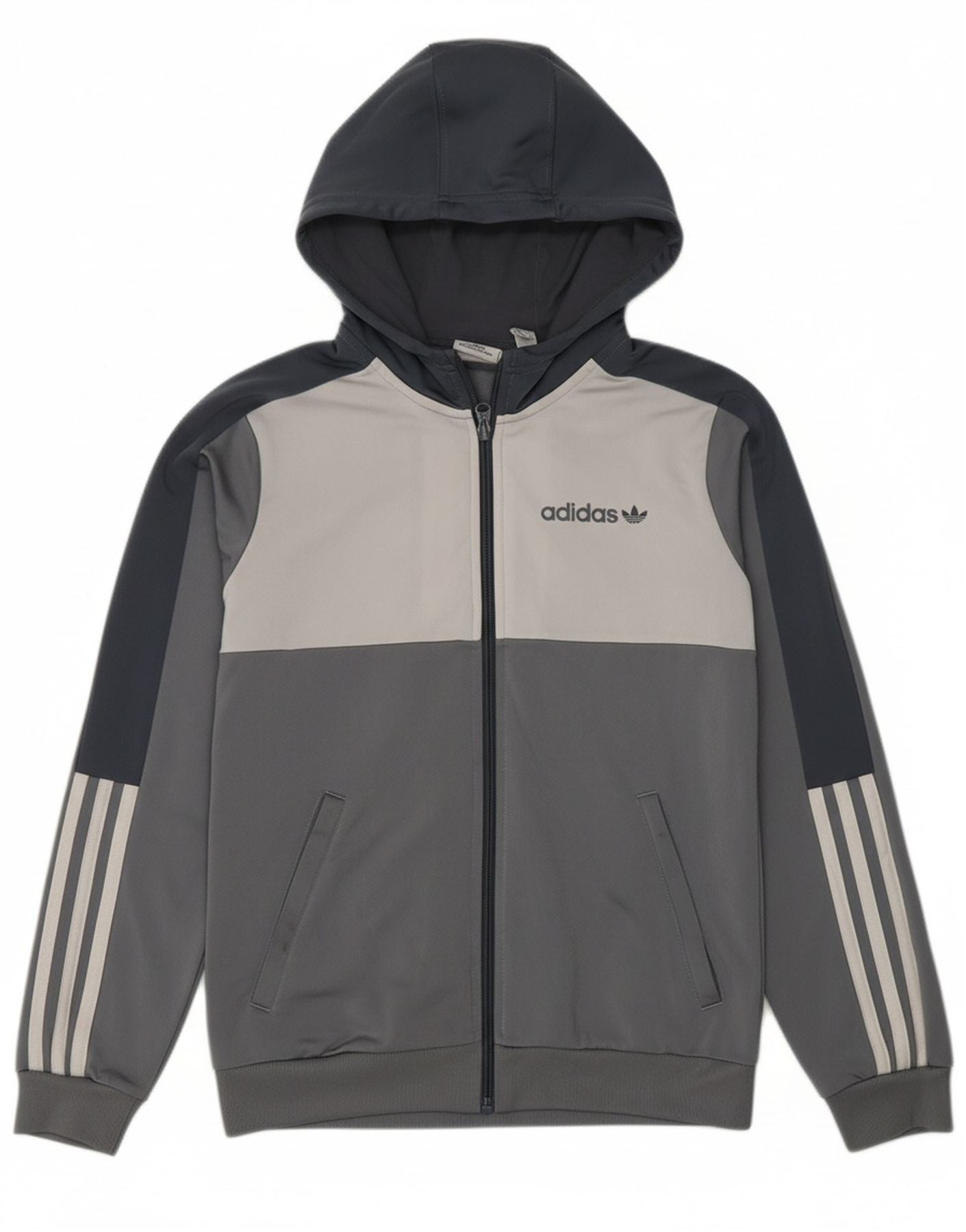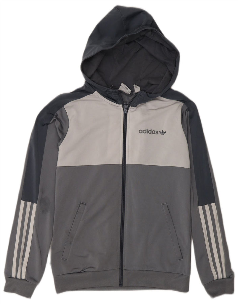 ADIDAS Boys Zip Hoodie Sweater 11-12 Years Grey Colourblock Polyester