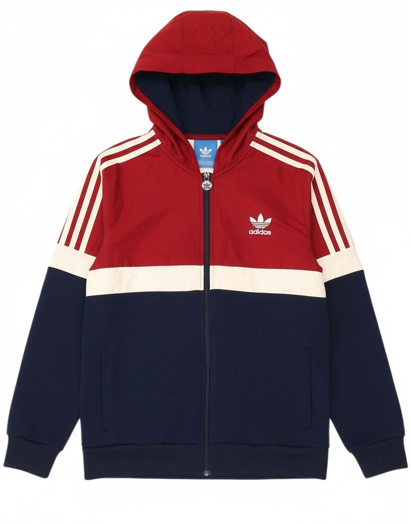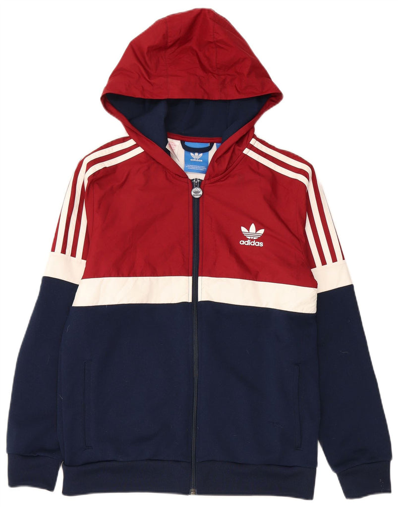ADIDAS Boys Zip Hoodie Sweater 13-14 Years Navy Blue Colourblock Polyester