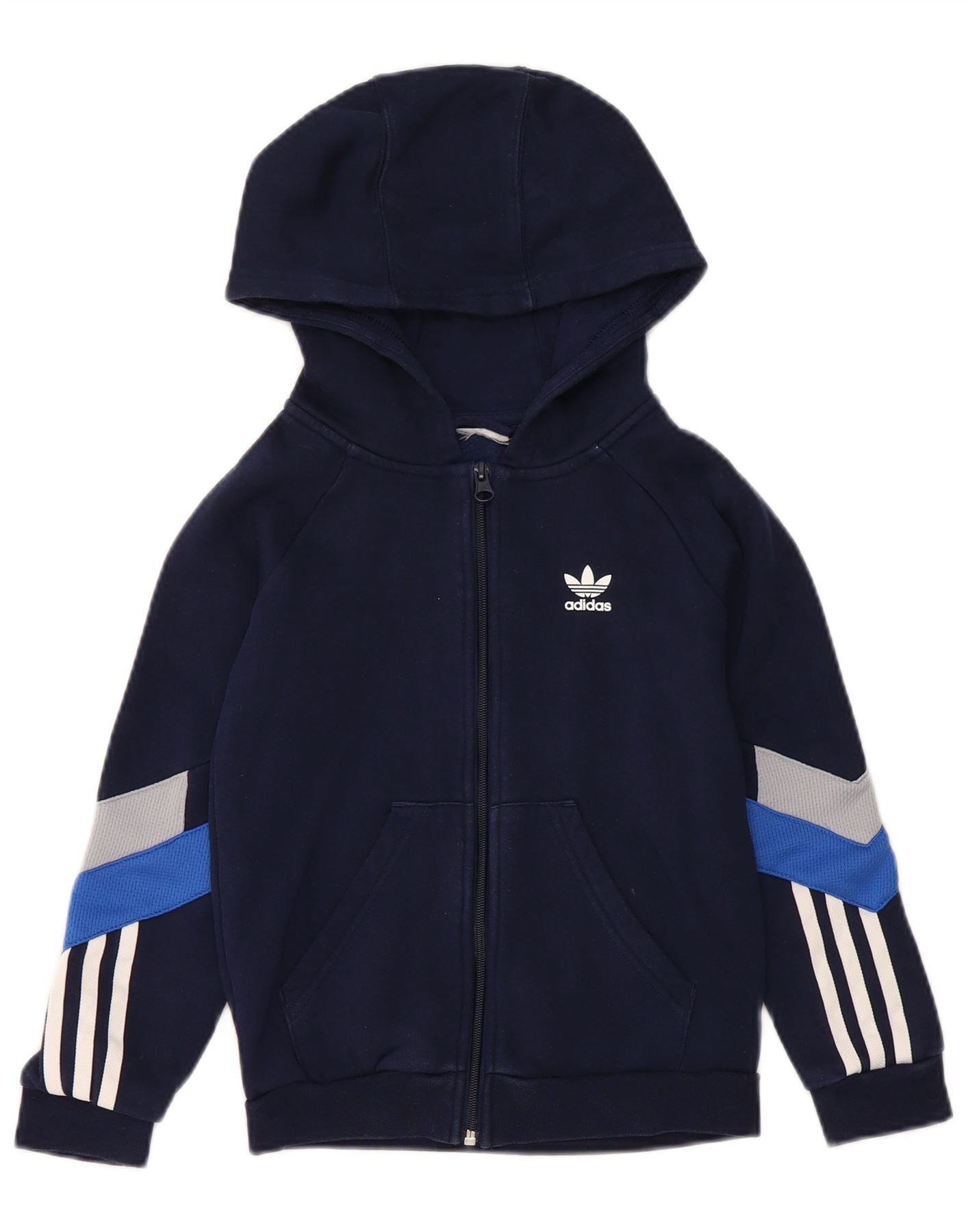 ADIDAS Boys Zip Hoodie Sweater 4-5 Years Navy Blue Colourblock Cotton
