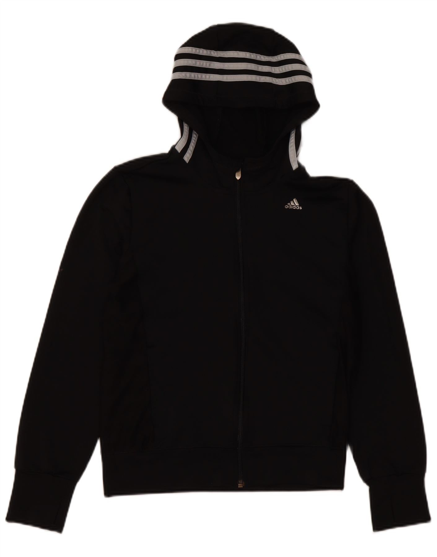ADIDAS Girls Climacool Zip Hoodie Sweater 11-12 Years Black Polyester