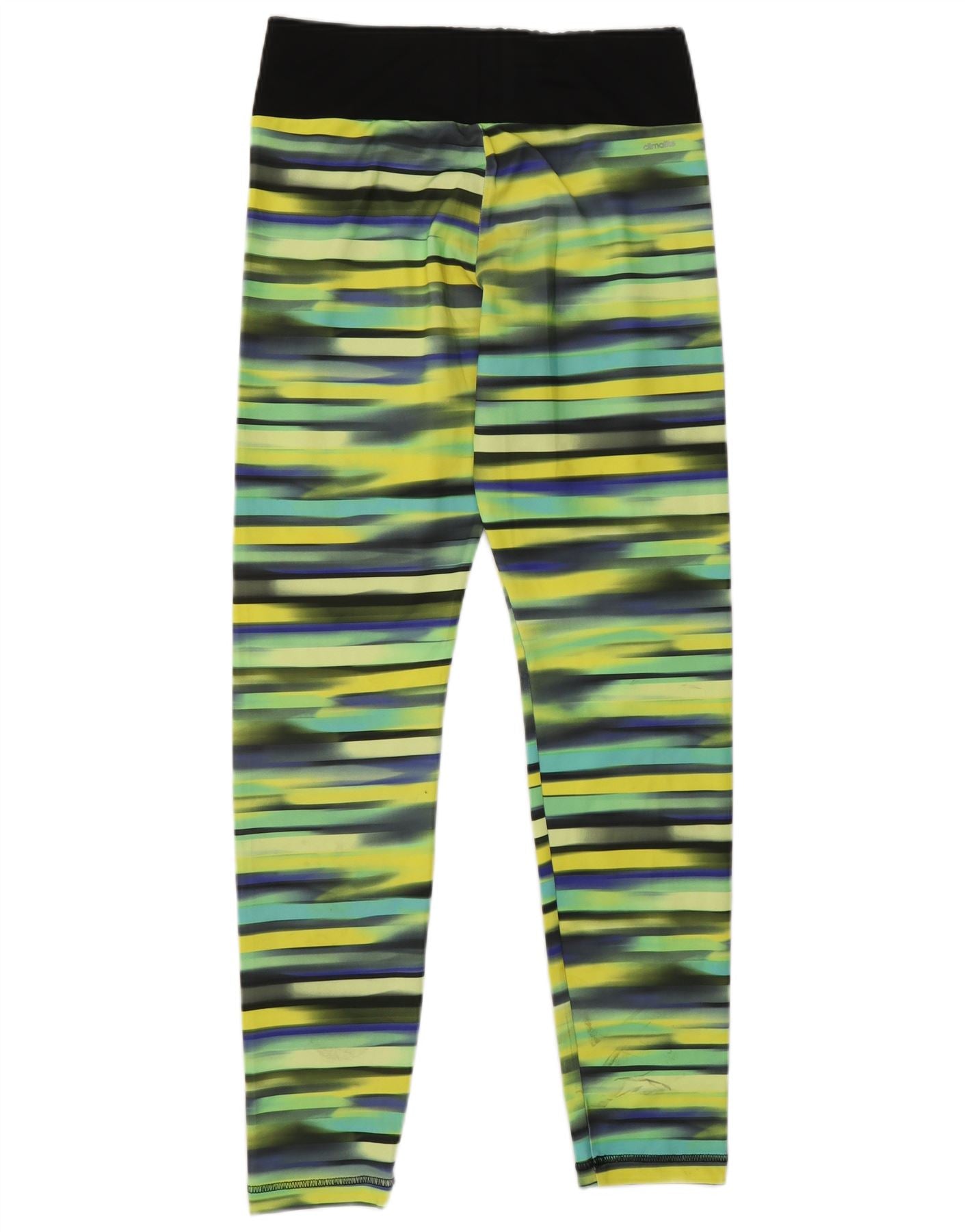 ADIDAS Girls Climalite Leggings 14-15 Years Yellow Striped Polyester