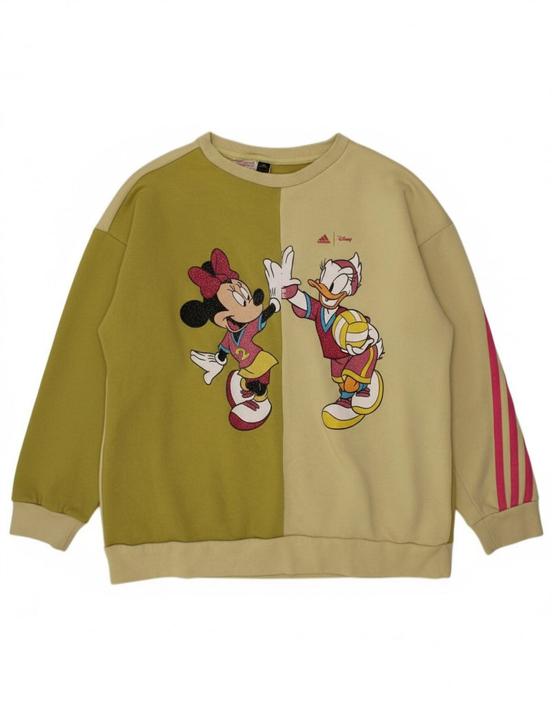 ADIDAS Girls Disney Graphic Sweatshirt Jumper 9-10 Years Green Colourblock