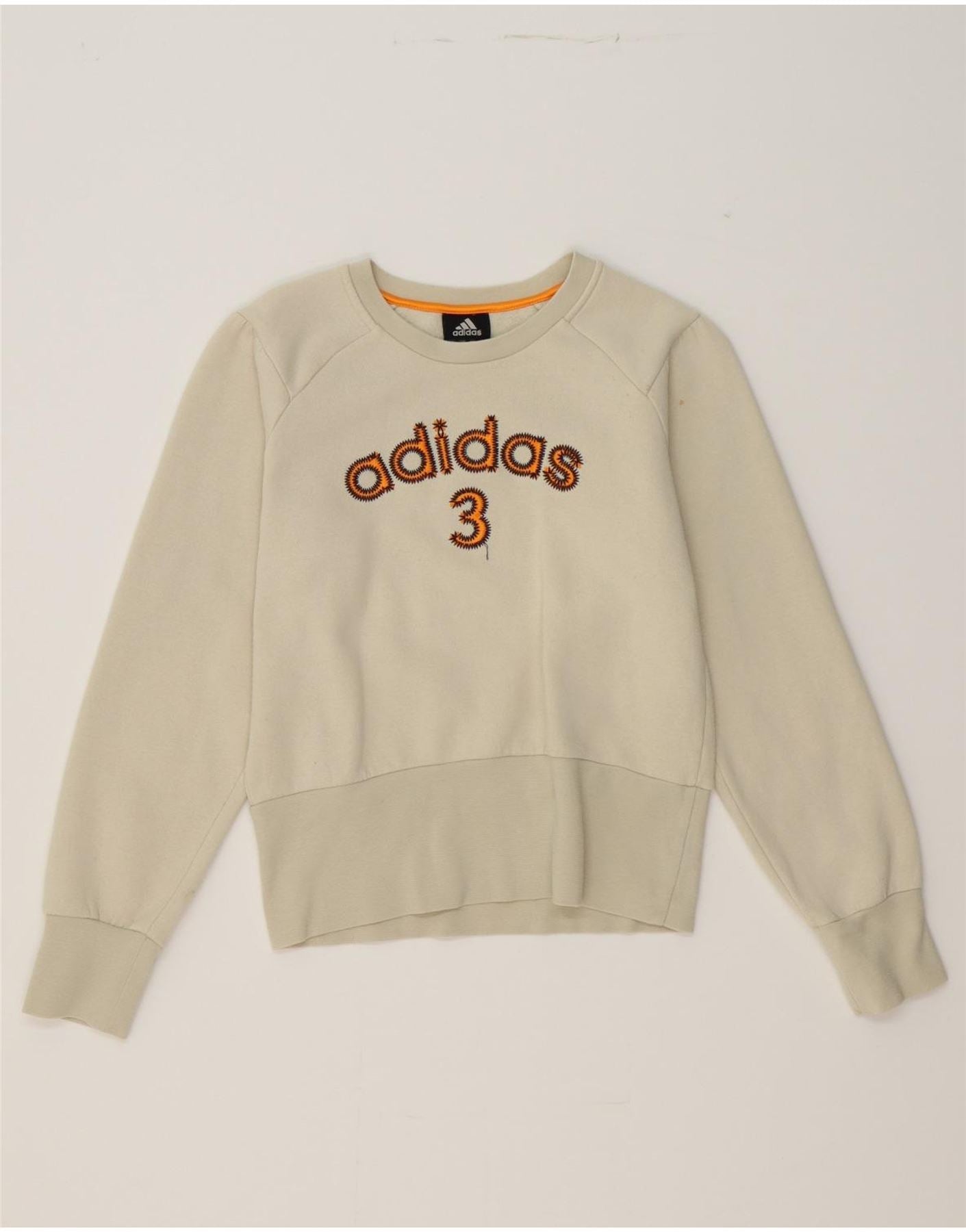 ADIDAS Girls Graphic Sweatshirt Jumper 13-14 Years Off White Cotton