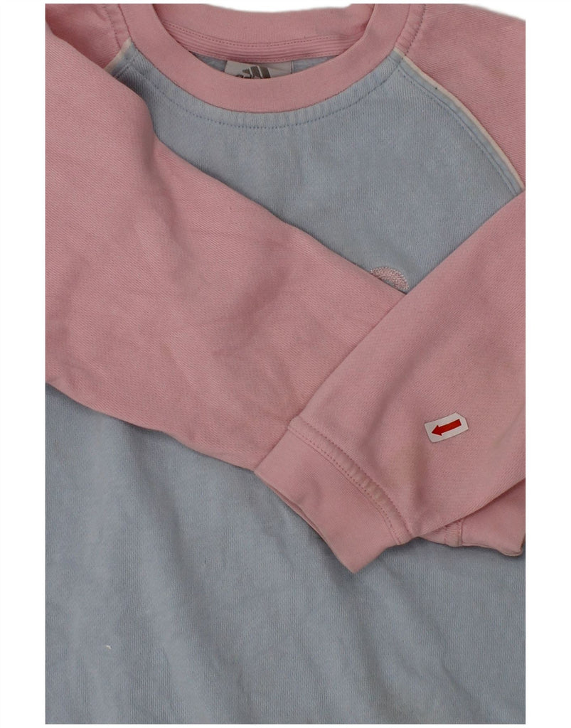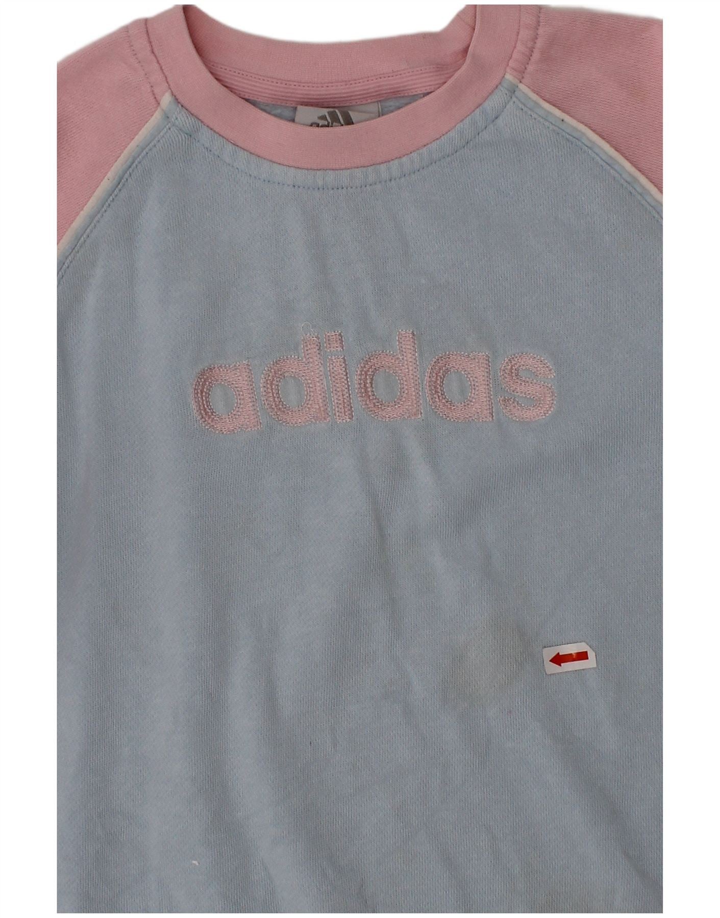 ADIDAS Girls Graphic Sweatshirt Jumper 2-3 Years Blue Colourblock Cotton