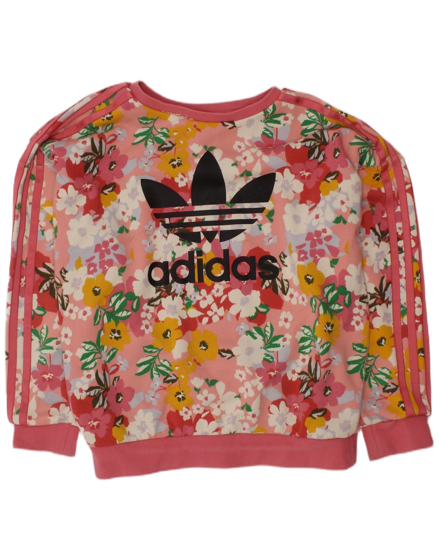 ADIDAS Girls Graphic Sweatshirt Jumper 9-10 Years Pink Floral Cotton