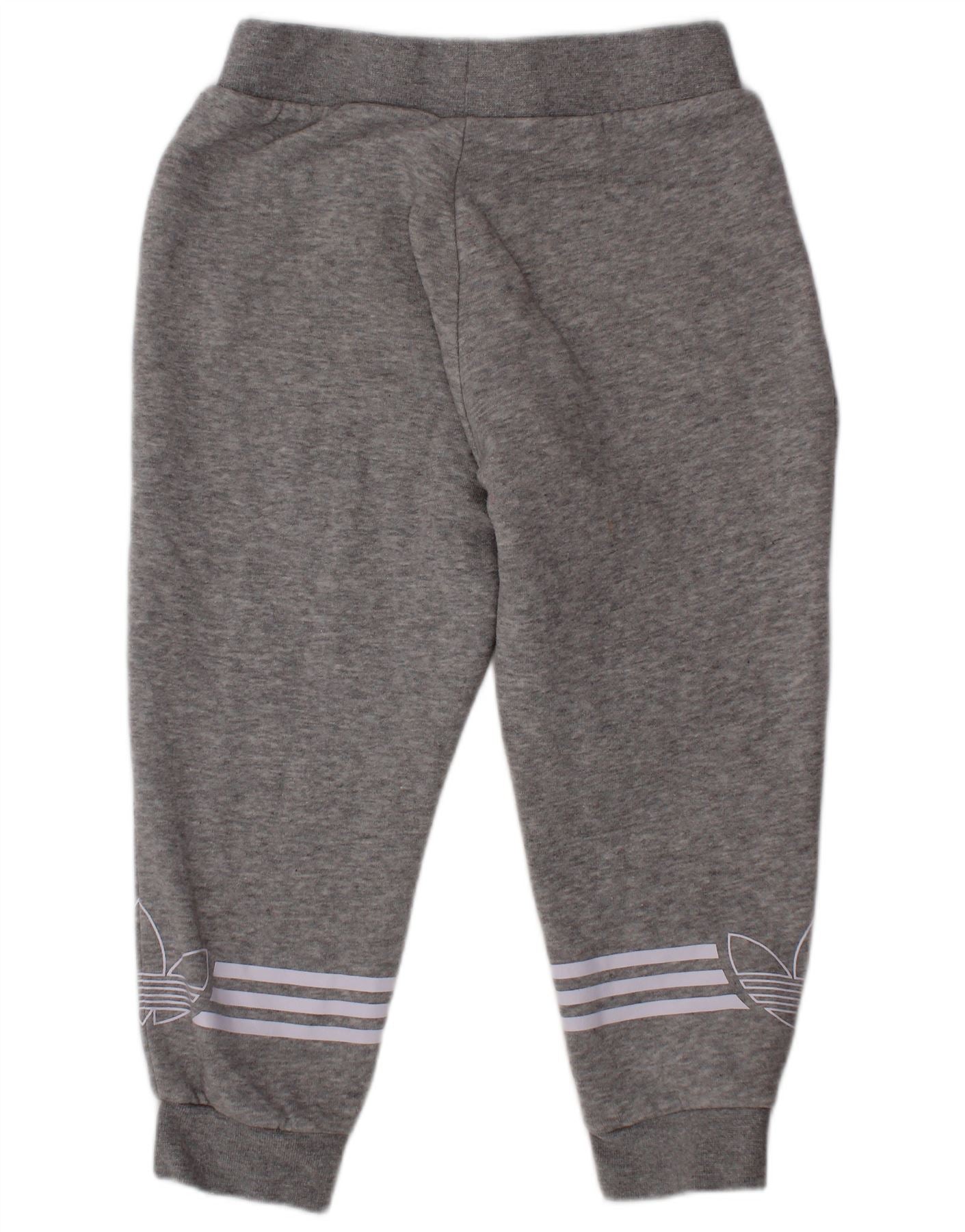 ADIDAS Girls Graphic Tracksuit Trousers Joggers 3-4 Years Grey Cotton