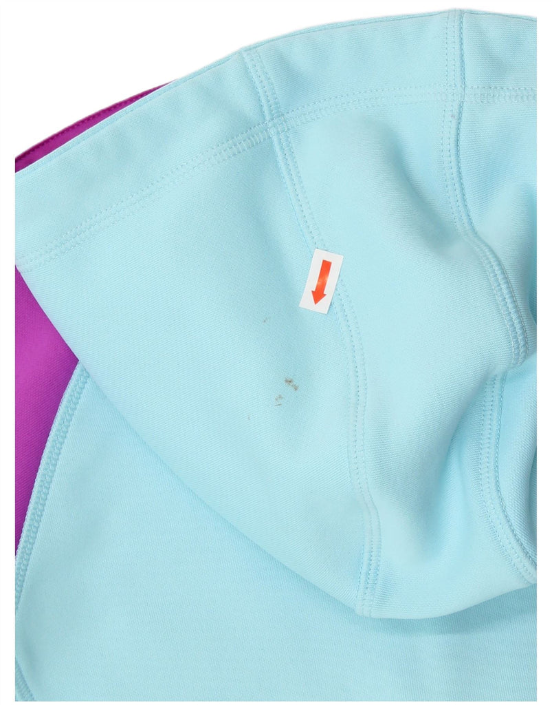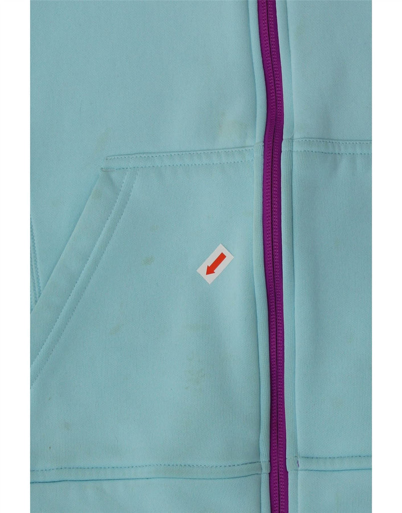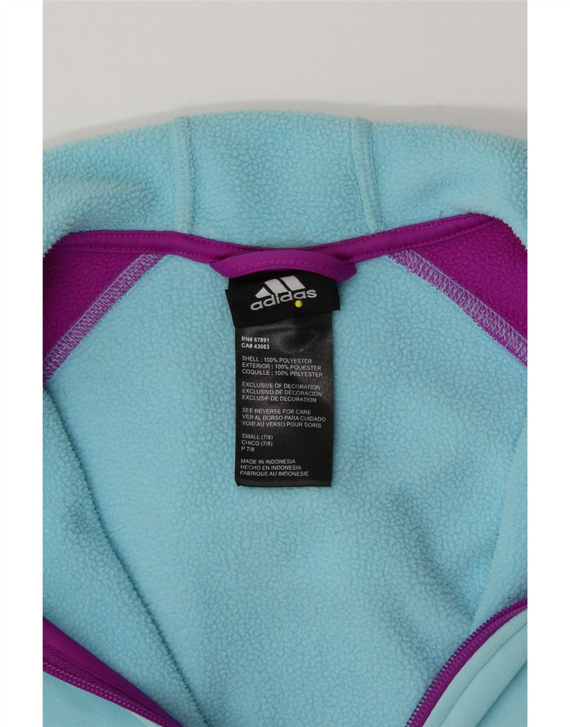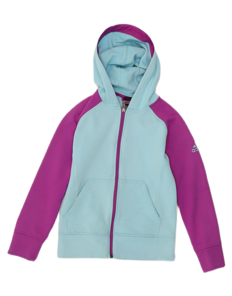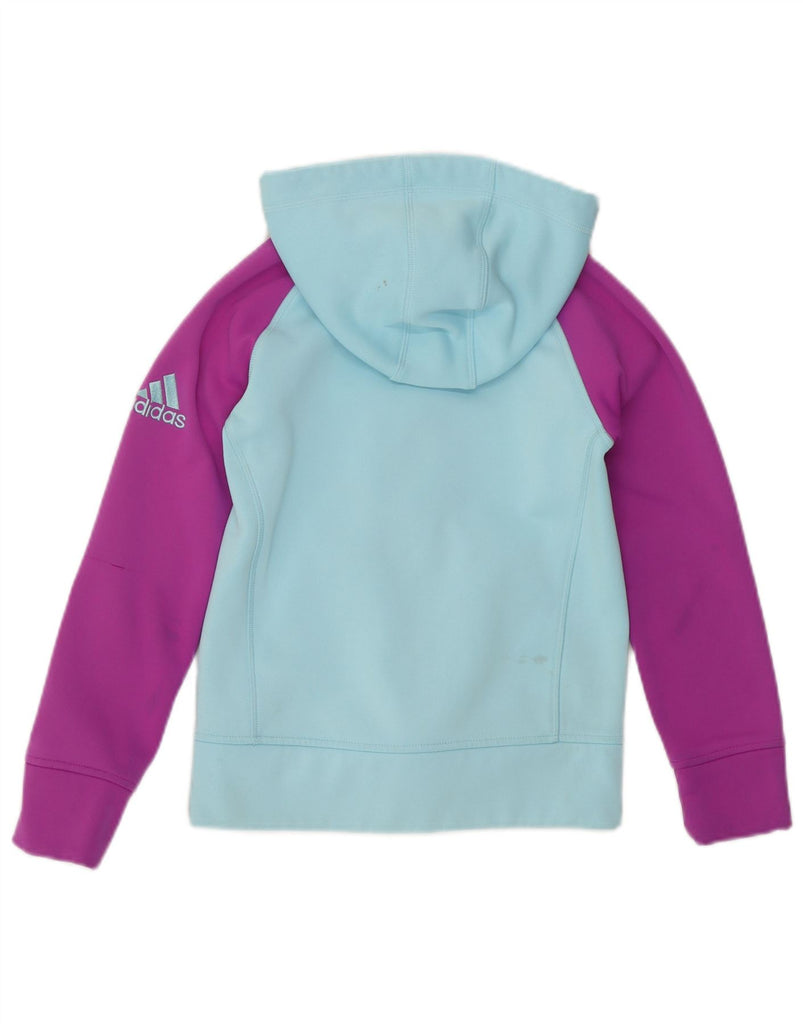 ADIDAS Girls Graphic Zip Hoodie Sweater 7-8 Years Small Blue Colourblock