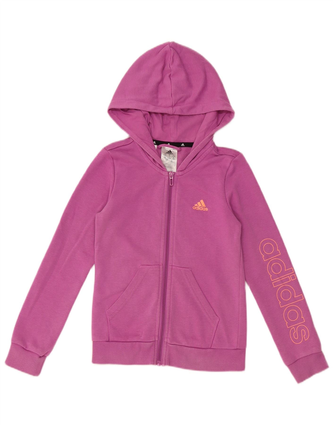 ADIDAS Girls Graphic Zip Hoodie Sweater 9-10 Years Purple Cotton