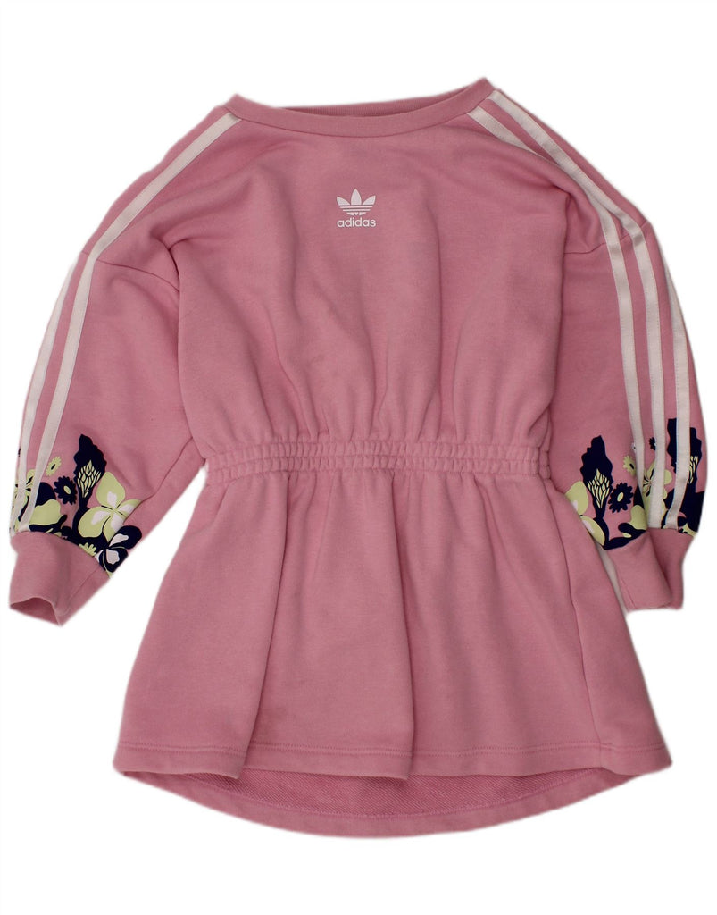 ADIDAS Girls Long Sleeve Basic Dress 4-5 Years Pink Floral Cotton