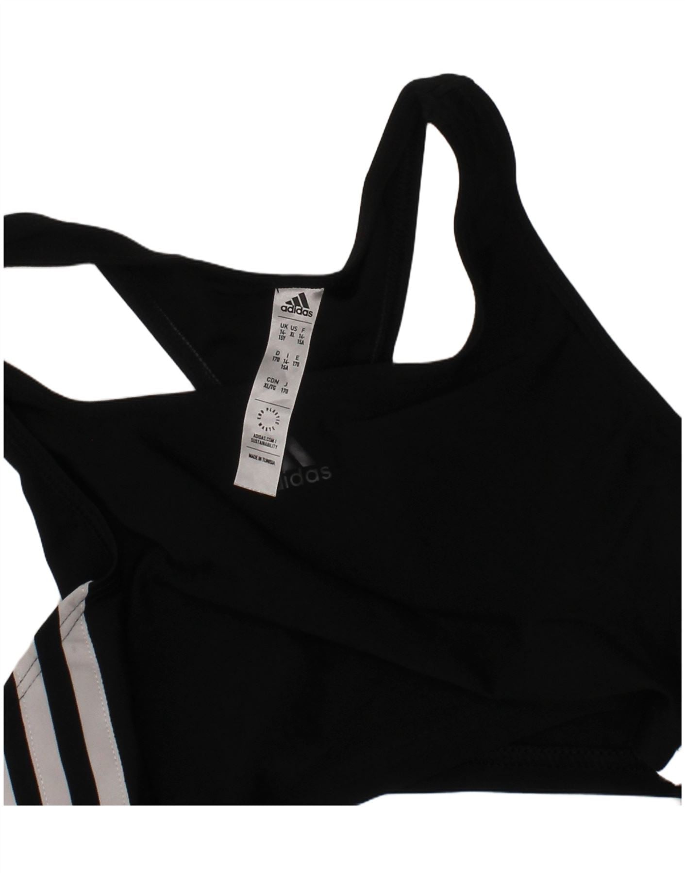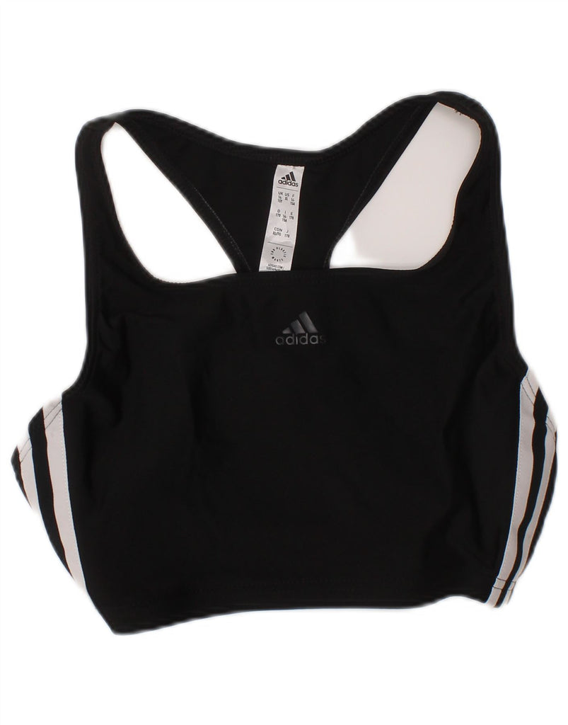 ADIDAS Girls Sport Bra Vest Top 14-15 Years Black Striped Polyester Sports