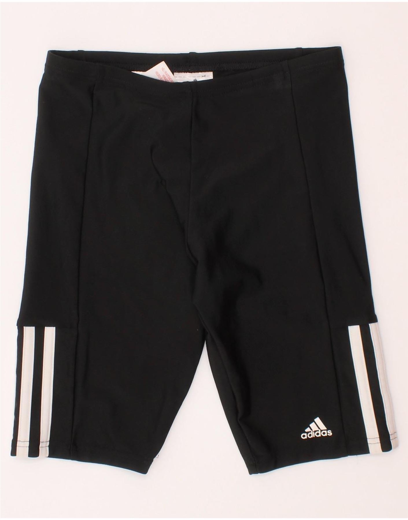- AI Description: This Adidas girls' swimming shorts are crafted from a smooth black polyamide blend, offering excellent stretch and comfort. The pull-on design features an elastic waist for a secure, extra-slim fit. Iconic white three stripes run down the sides, adding a classic sports detail. An Adidas logo is subtly placed on the left leg. The Infinitex fabric ensures durability for swimming.