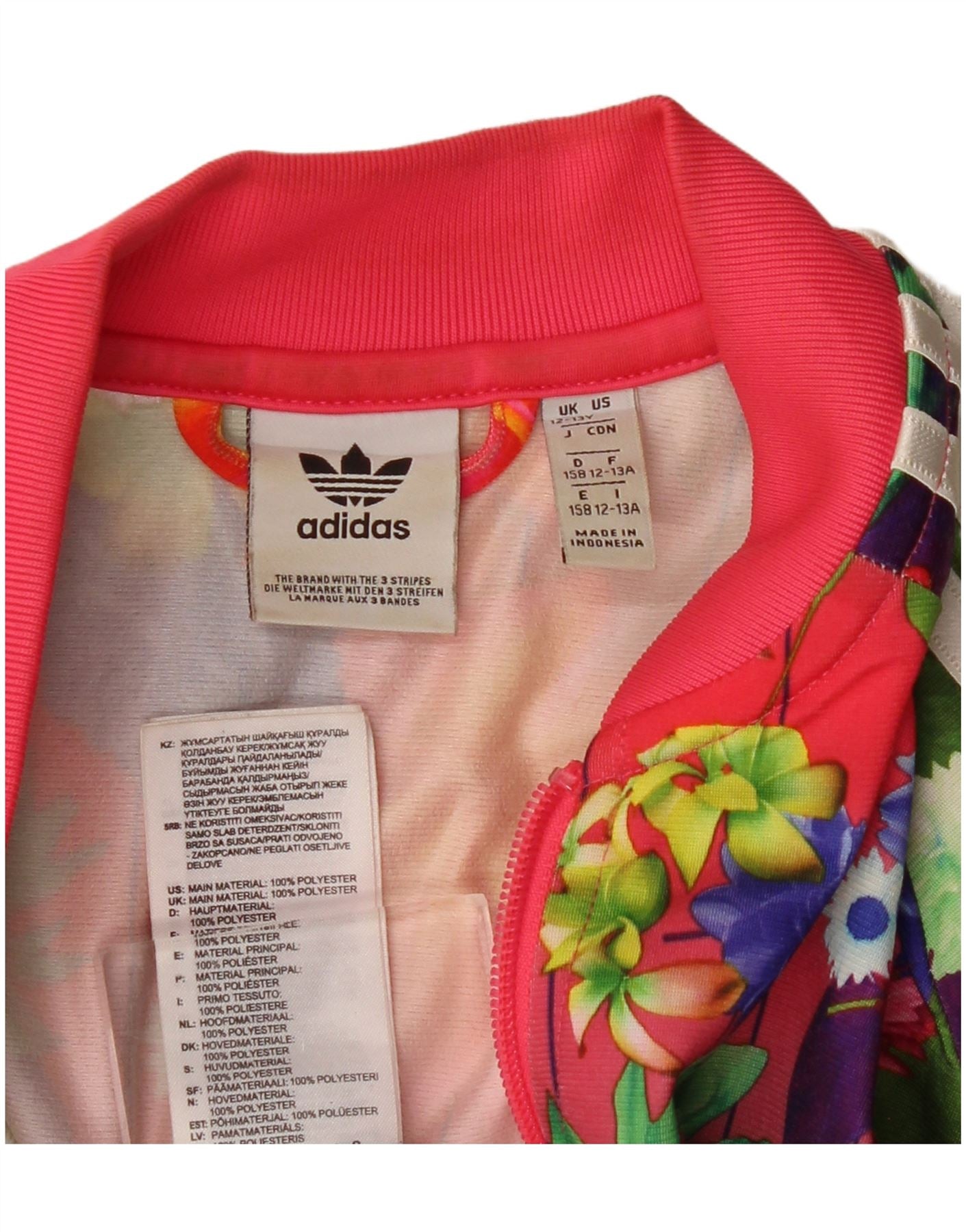 ADIDAS Girls Tracksuit Top Jacket 12-13 Years Multicoloured Floral