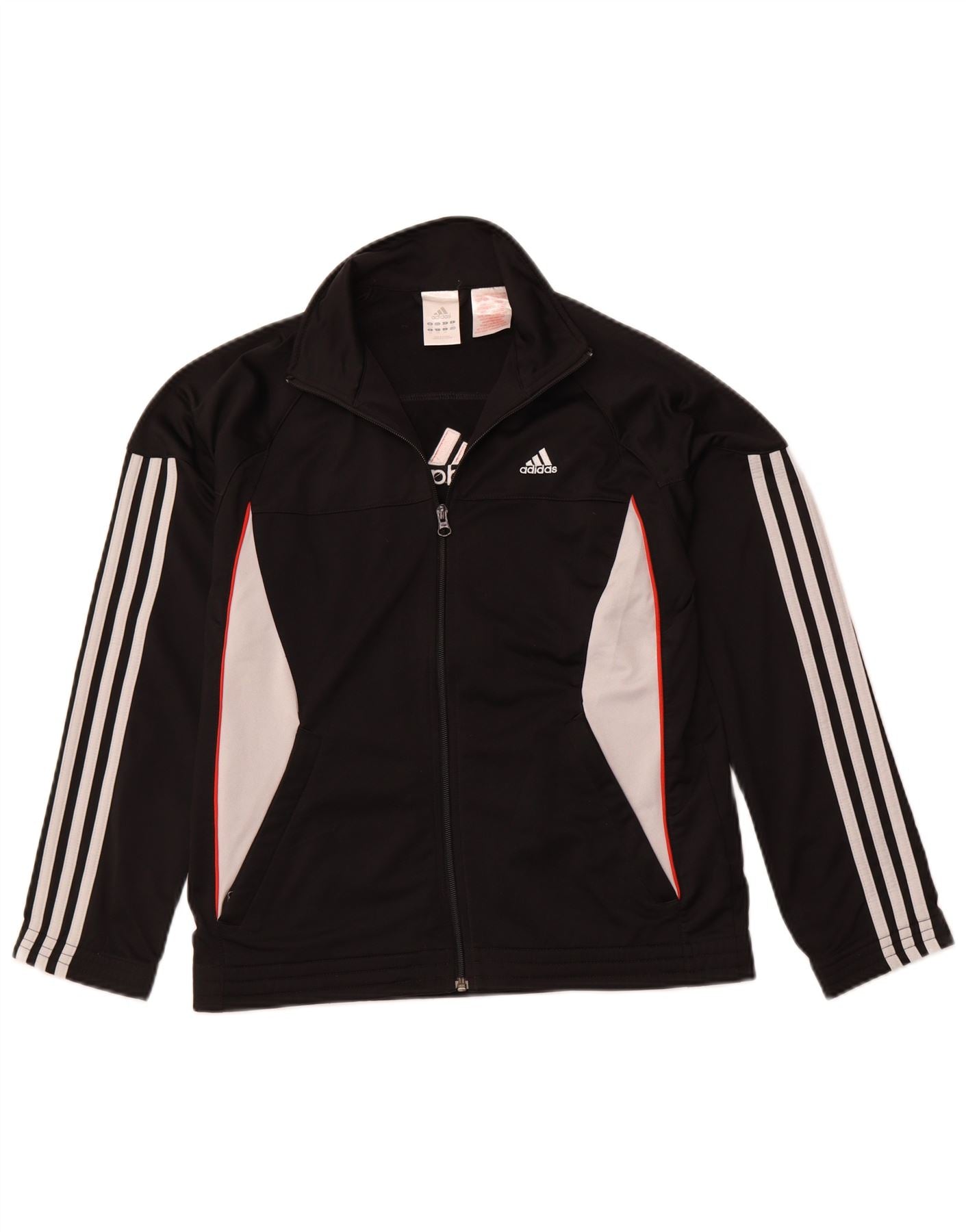 ADIDAS Girls Tracksuit Top Jacket 13-14 Years Black Colourblock Sports