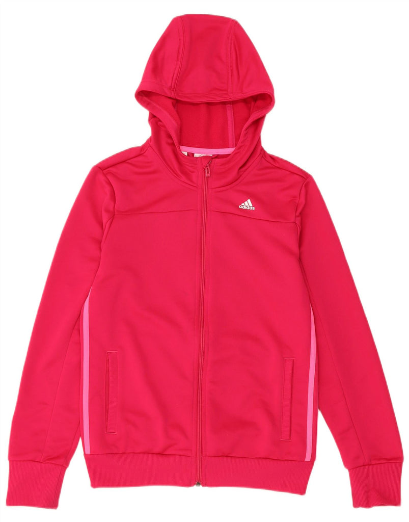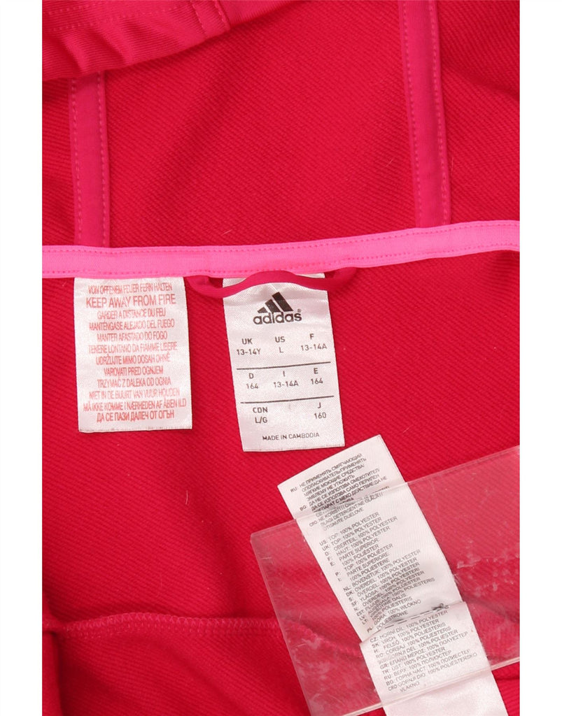ADIDAS Girls Zip Hoodie Sweater 13-14 Years Pink Colourblock Polyester