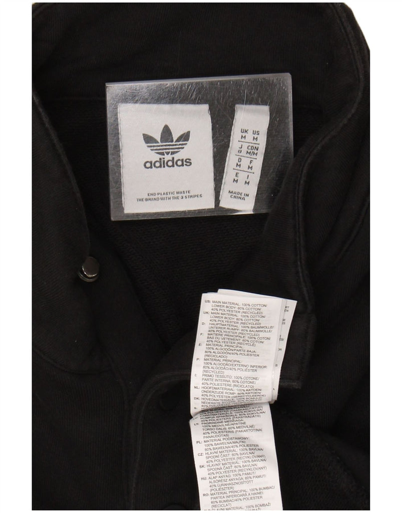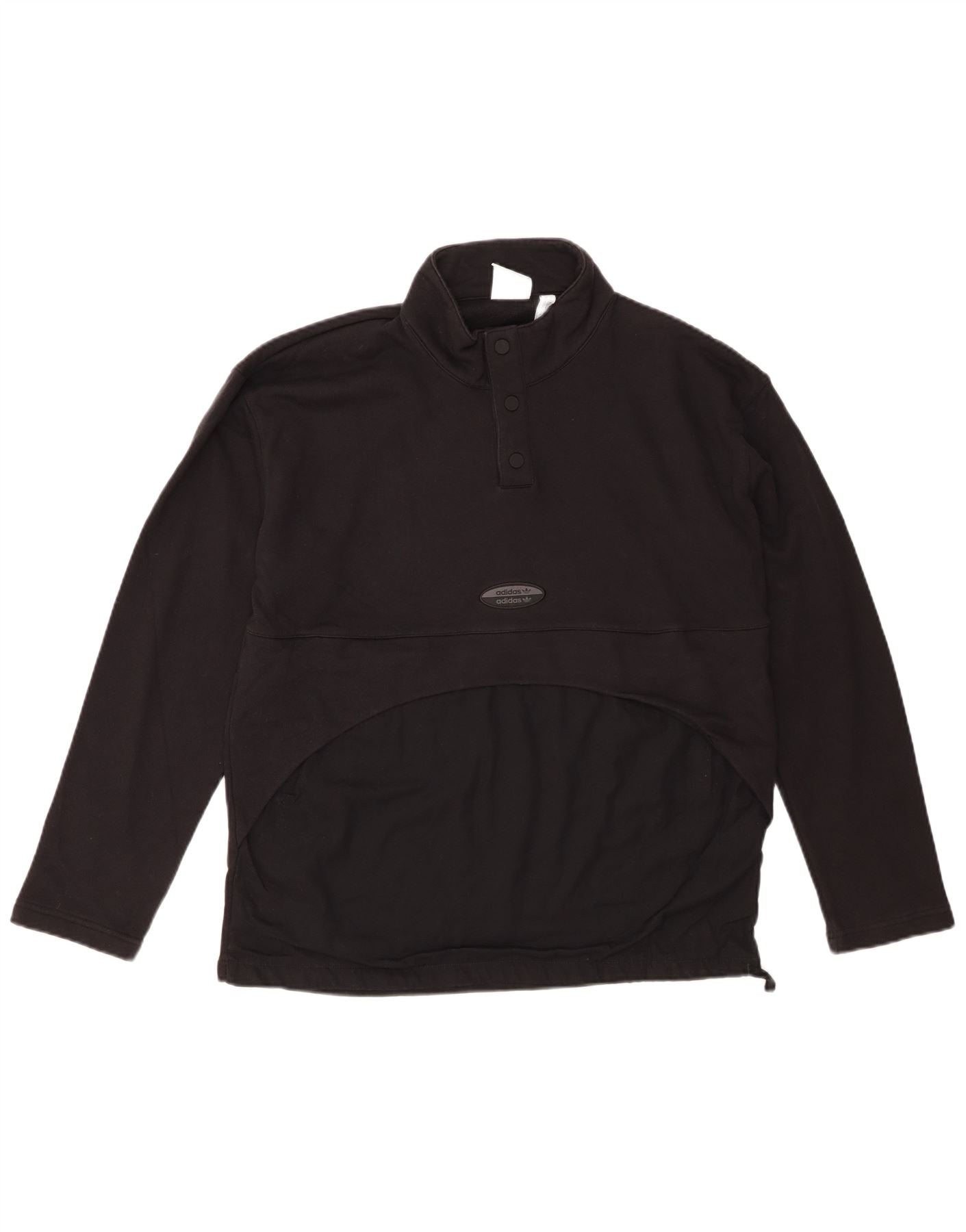 ADIDAS Mens Button Neck Sweatshirt Jumper Medium Black Cotton