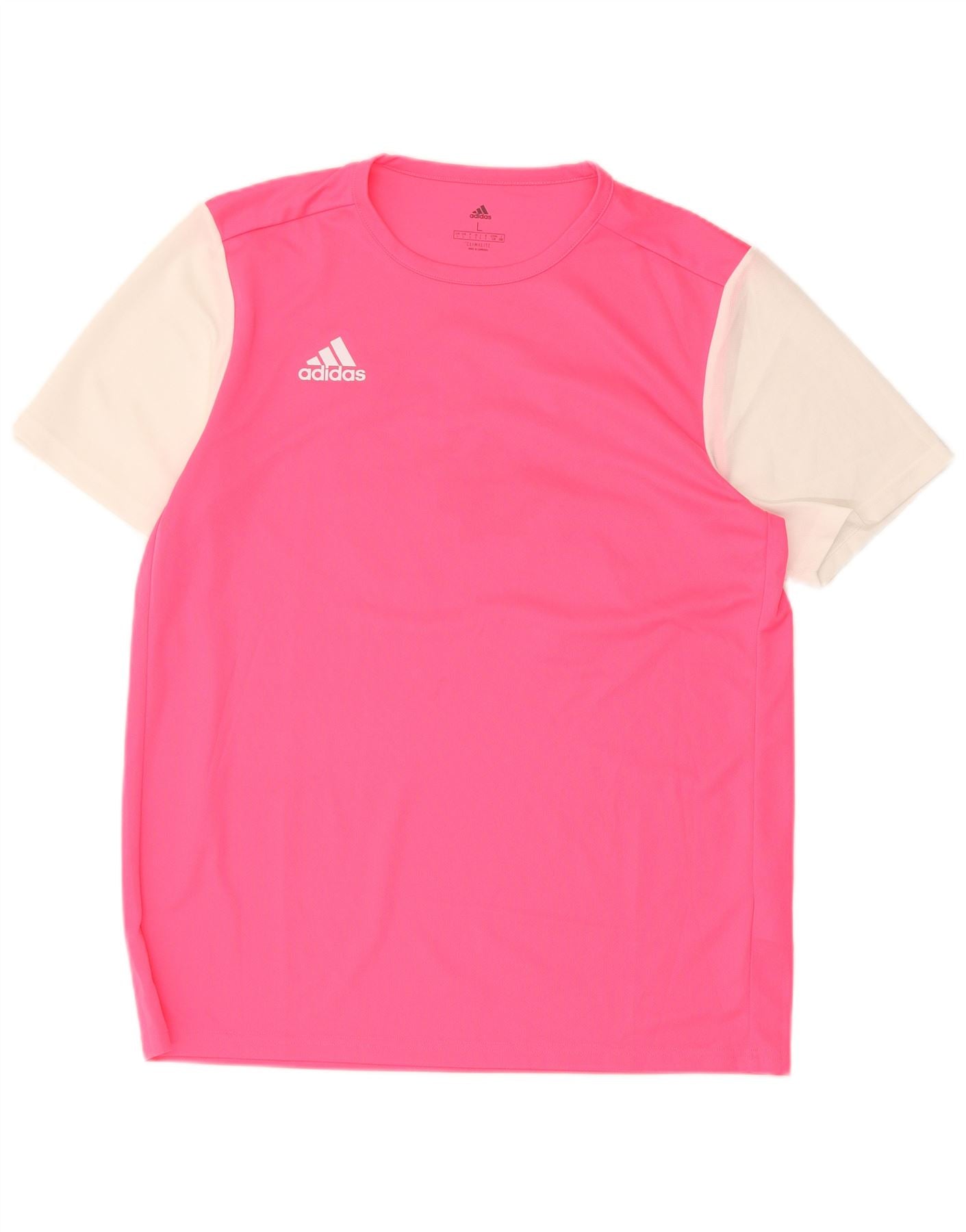 ADIDAS Mens Climalite Graphic T-Shirt Top Large Pink Colourblock Polyester