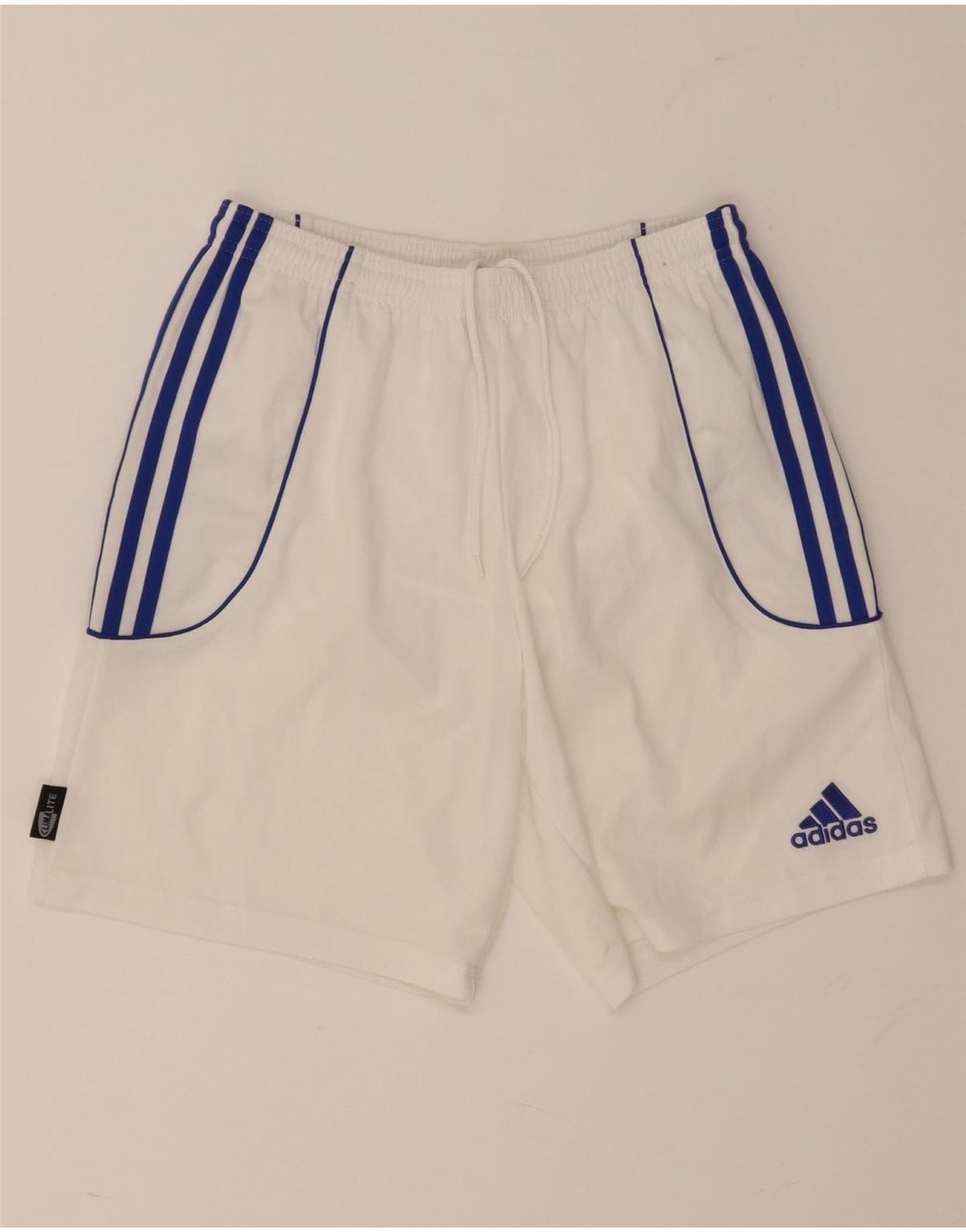 - AI Description: These Adidas activewear shorts for men are designed for comfort and performance. Featuring a classic white colour with bold blue stripes on the sides and a drawstring waist for an adjustable fit. The shorts have pockets for practicality. Made from 100% polyester, they are lightweight and breathable, perfect for sports or casual wear. The iconic Adidas logo is visible on the front.