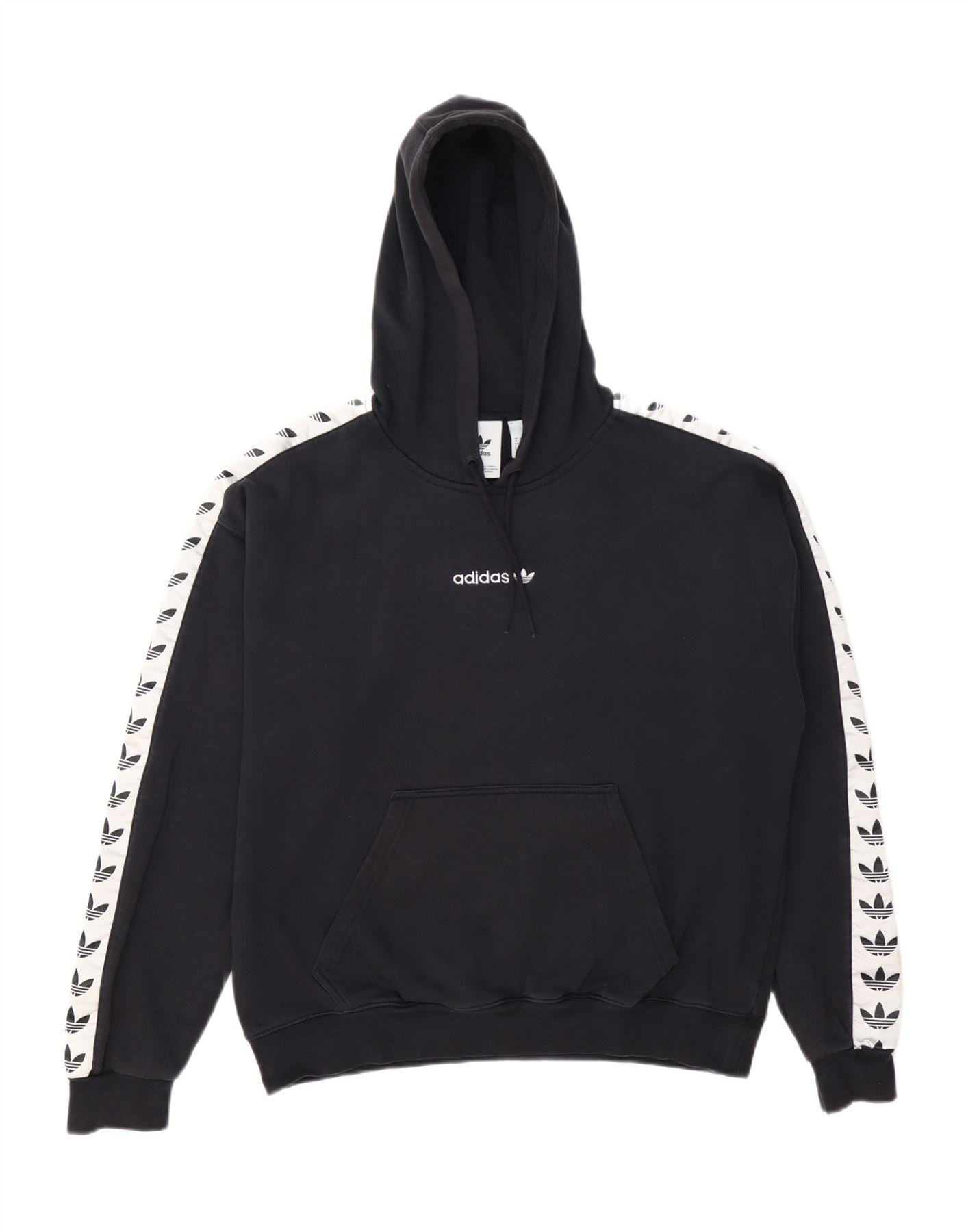ADIDAS Mens Graphic Hoodie Jumper Medium Black Colourblock Cotton