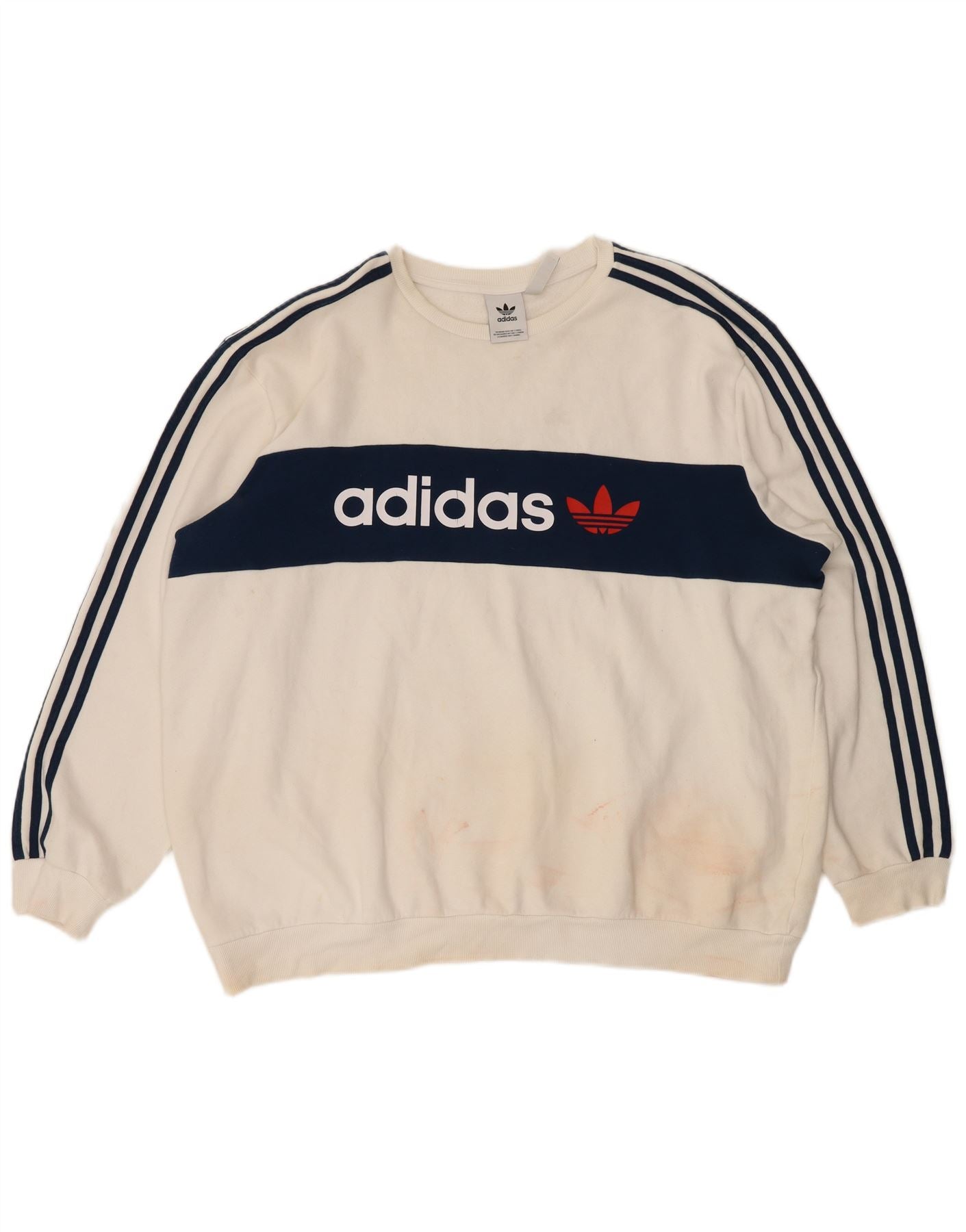 ADIDAS Mens Graphic Sweatshirt Jumper 2XL White Colourblock Cotton