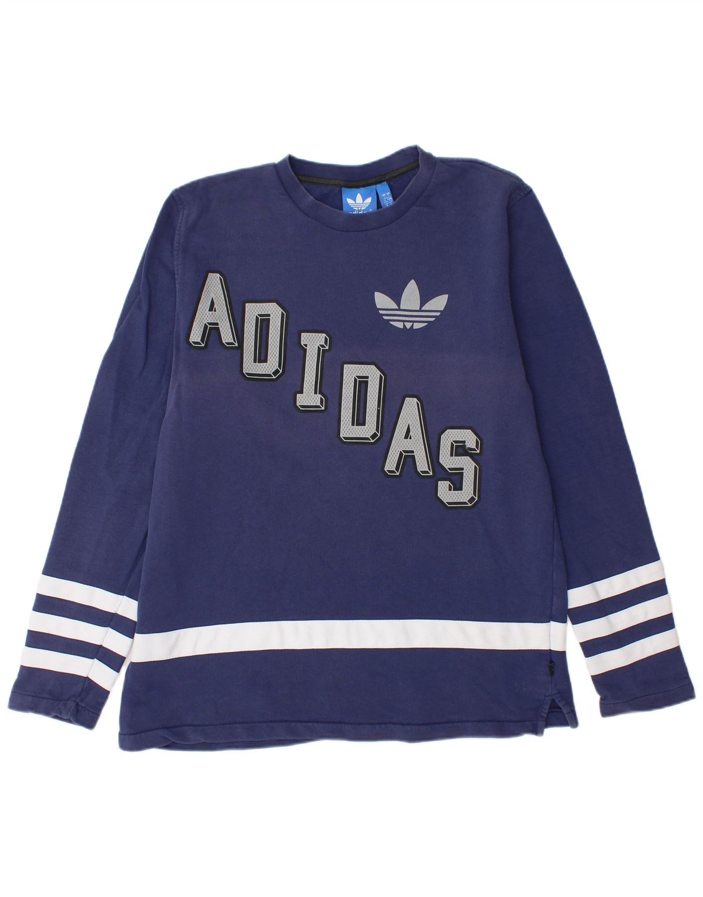 ADIDAS Mens Graphic Sweatshirt Jumper Large Navy Blue Colourblock Cotton