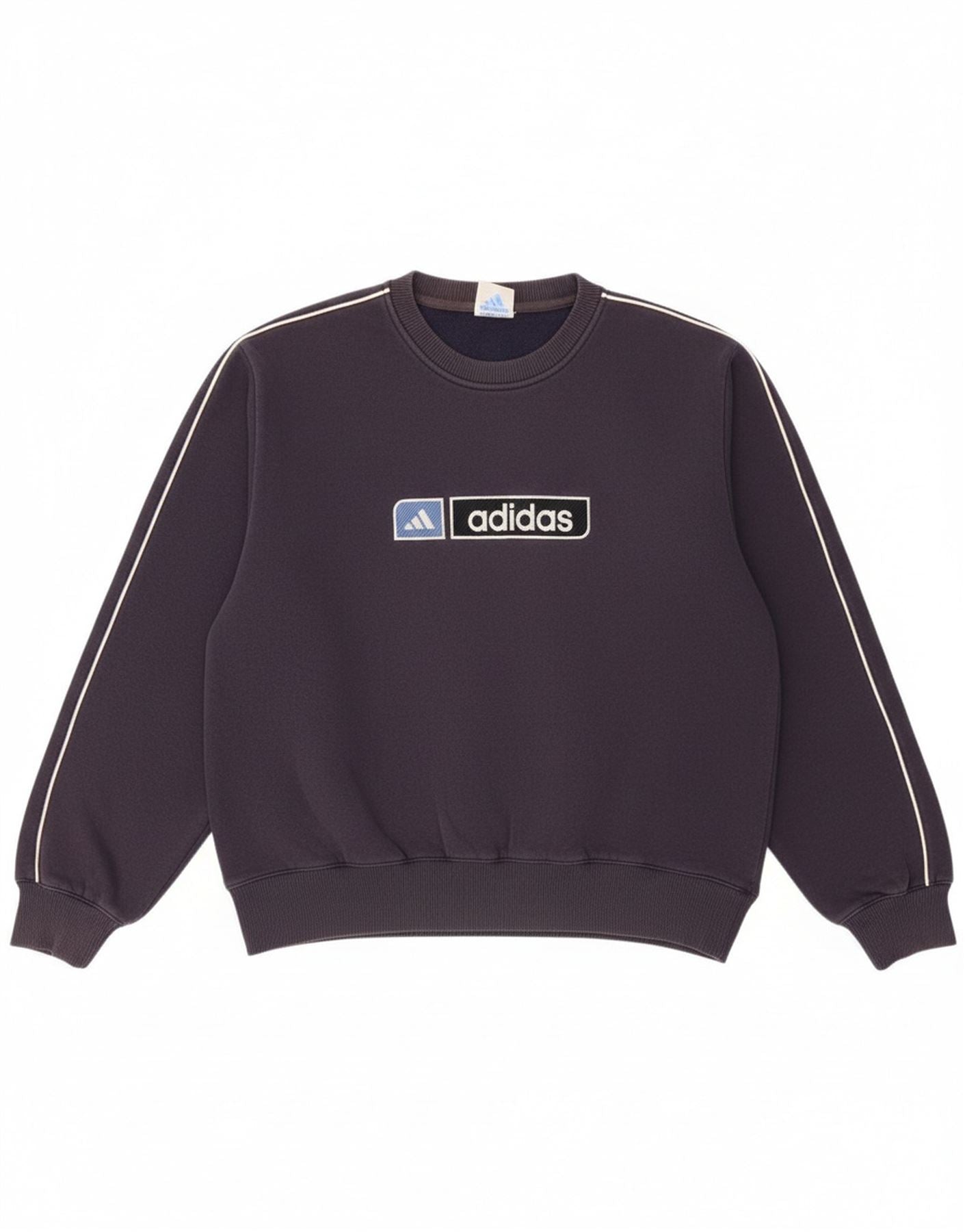- AI Description: This Adidas mens sweatshirt jumper is presented in a deep navy blue knit fabric. It features a classic round neck and long sleeves for a timeless profile. The regular fit offers everyday comfort and effortless wear. Cuffed wrists and a pullover style complete the design. An Adidas spell-out logo adds a distinct branding touch.